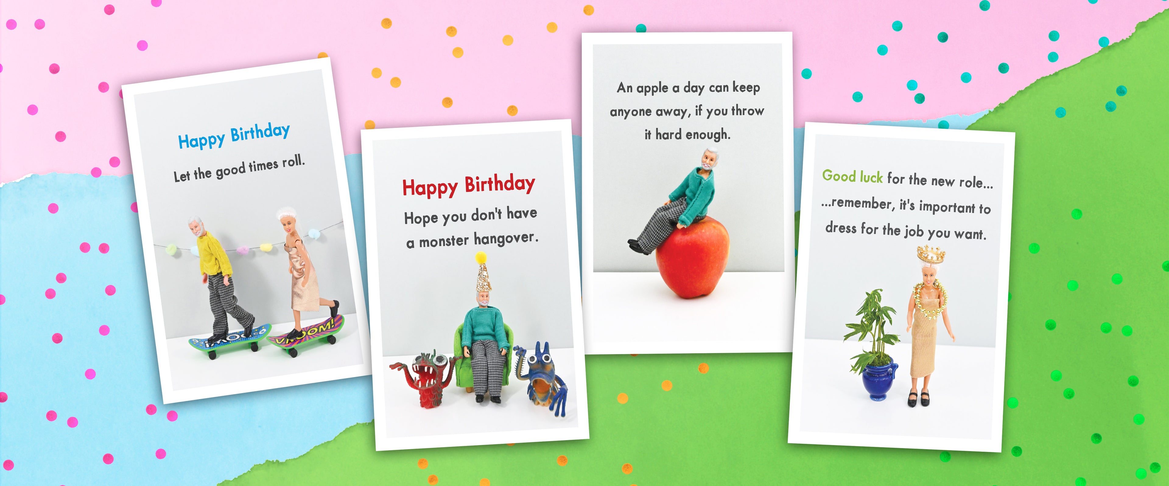 This bold and unapologetically hilarious card line delivers vibrant, full-colour designs inside & out,paired with humour that cuts through the fluff!
