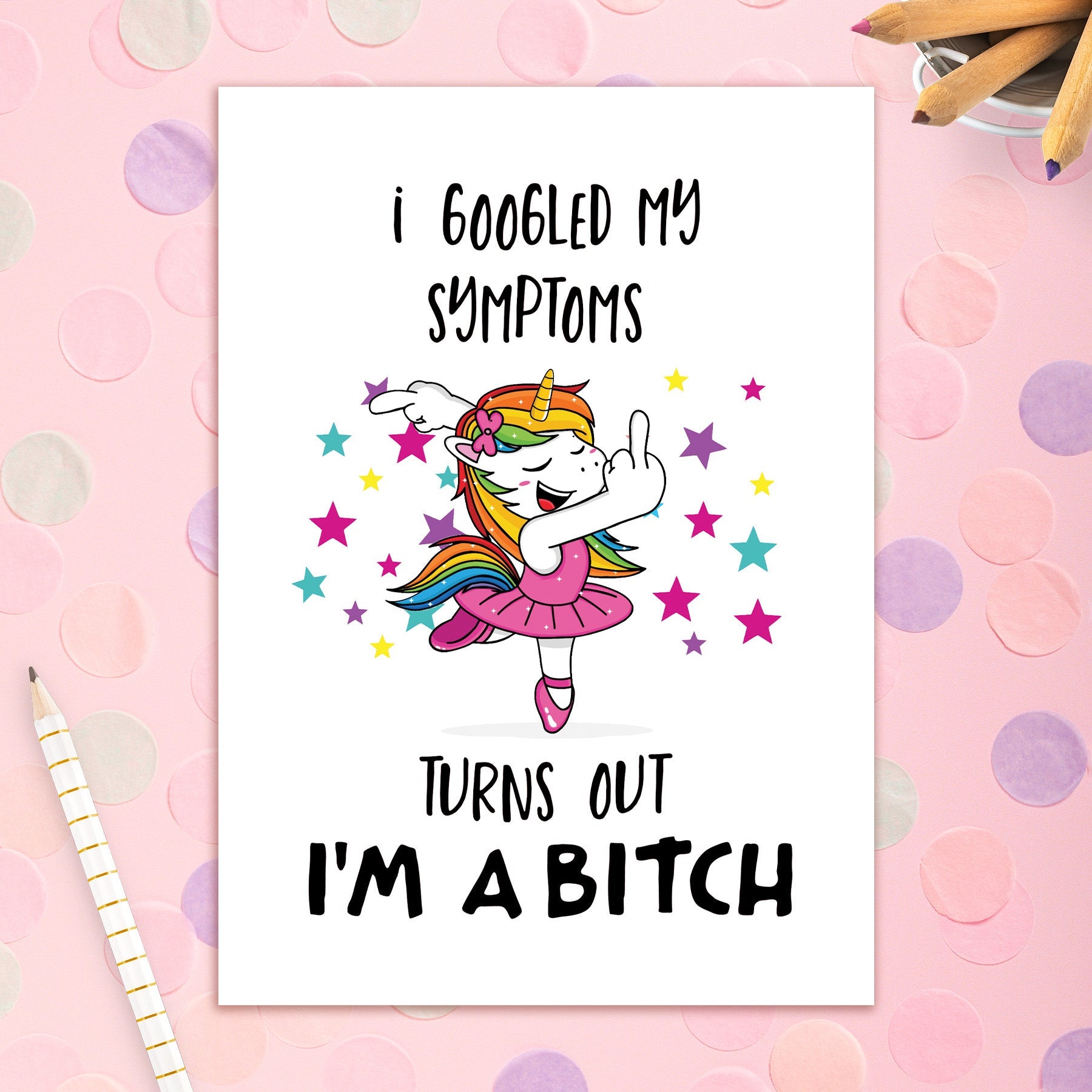 This greeting card measures 5 x 7 and comes with a coordinating colorful envelope.