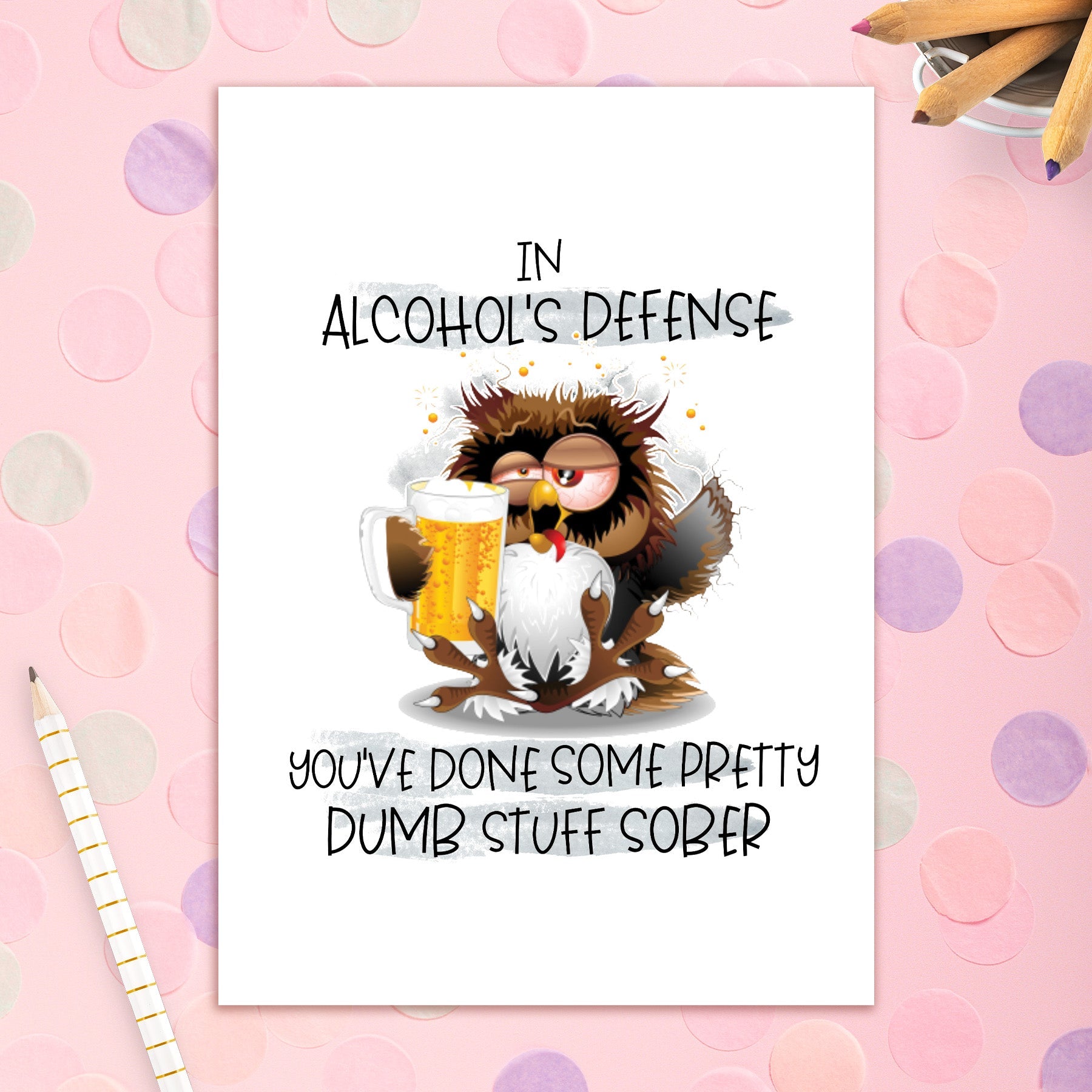 This greeting card measures 5 x 7 and comes with a coordinating colorful envelope.