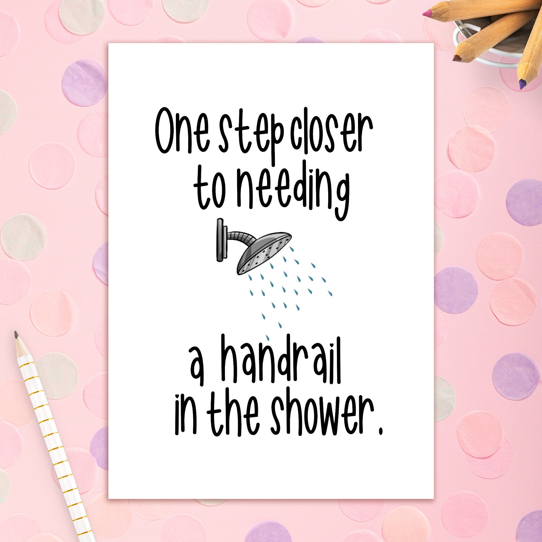 This greeting card measures 5 x 7 and comes with a coordinating colorful envelope.