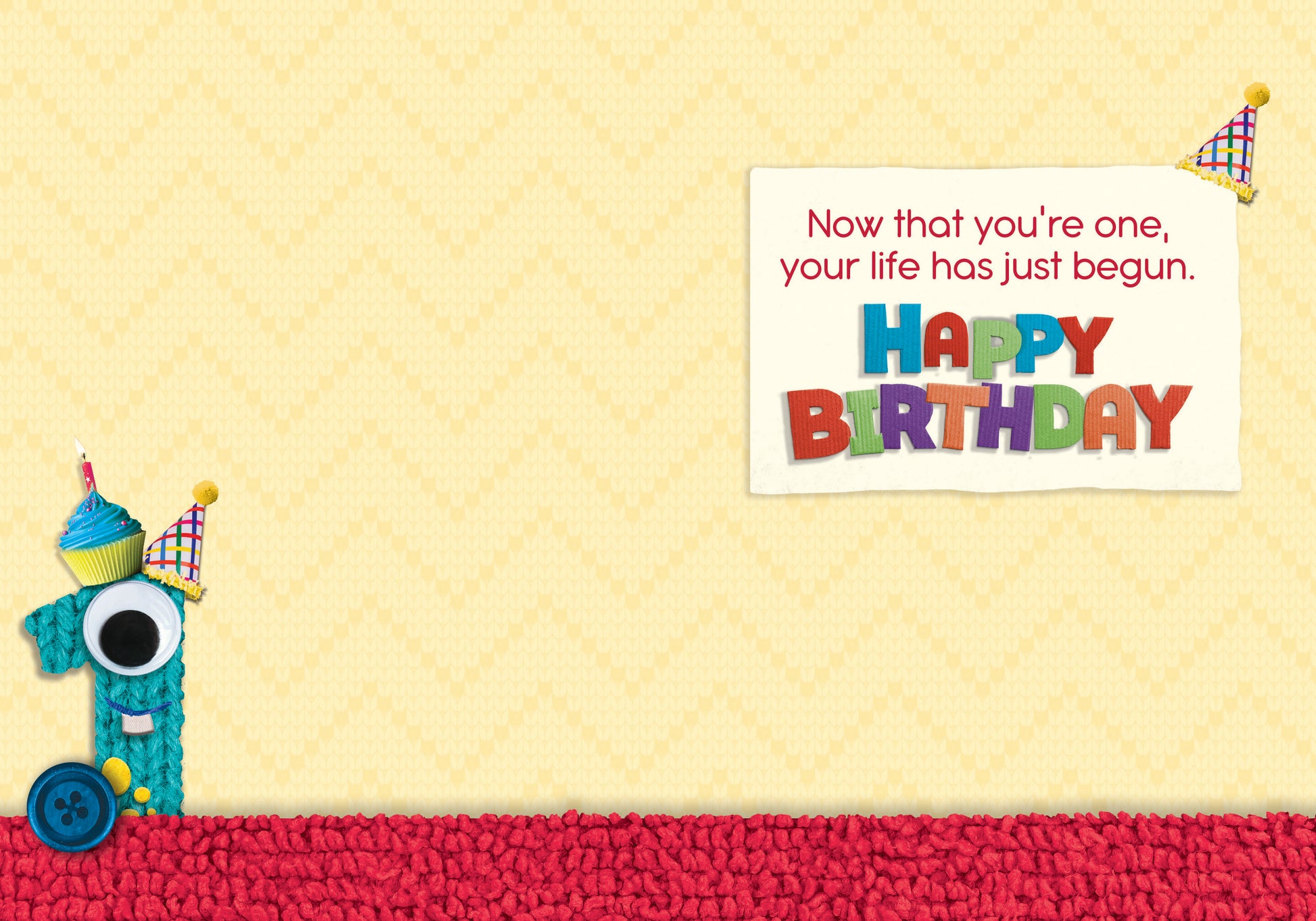 Inside Greeting: Now that you're one, your life has just begun. Happy Birthday.