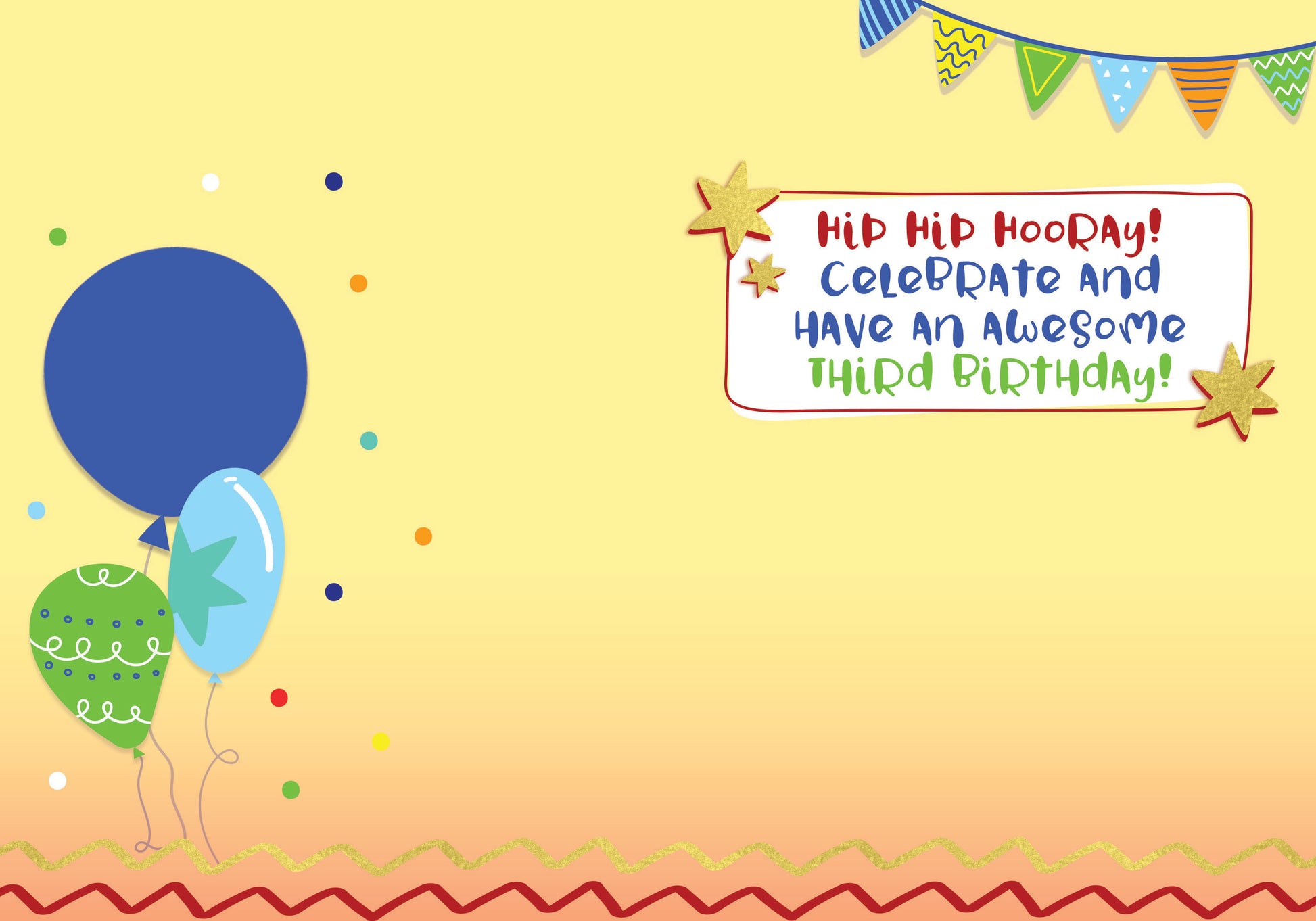 Inside Greeting: Hip Hip Hooray! Celebrate and have an awesome third birthday!