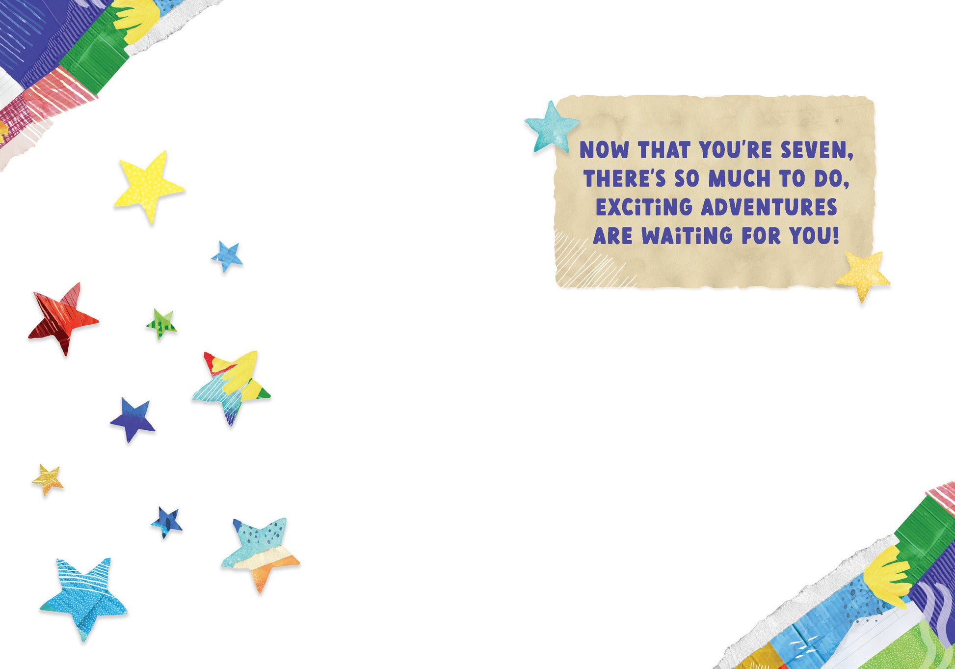 Inside Greeting: Now that you're seven there's so much to do, exciting adventures are waiting for you.