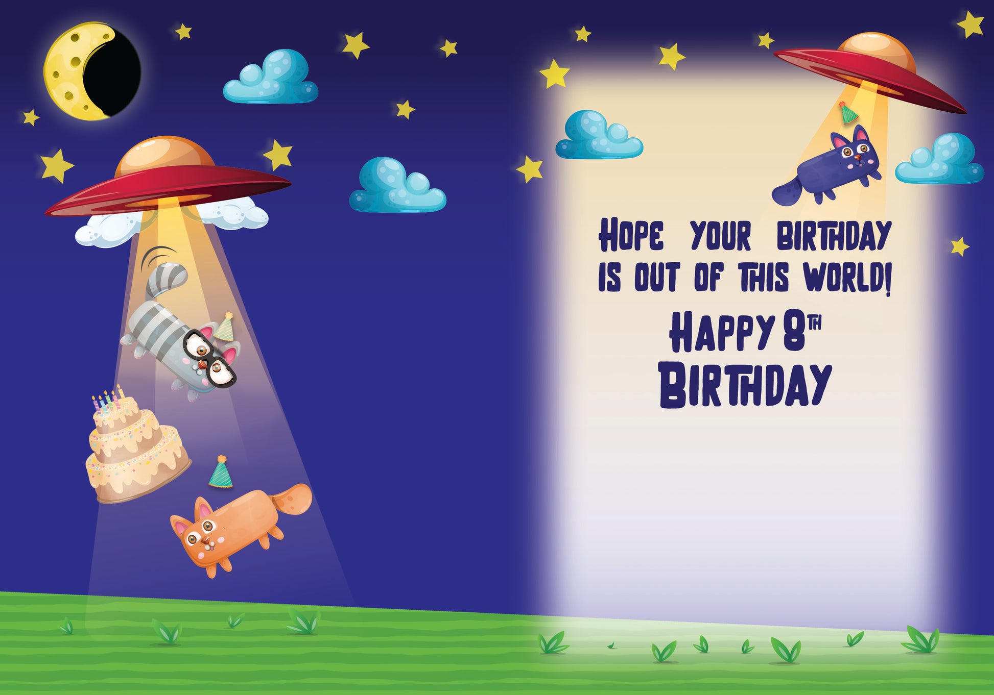 Inside Greeting: Hope your birthday is out of this world! Happy 8th Birthday.