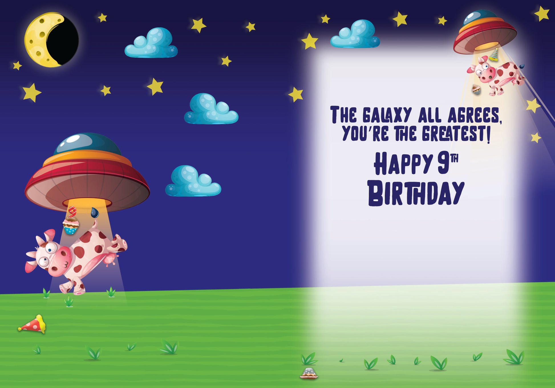 Inside Greeting: The galaxy all agrees you're the greatest! Happy 9th Birthday.
