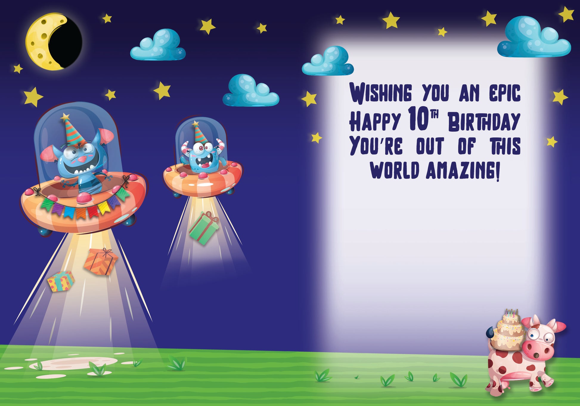 Inside Greeting: Wishing you an epic Happy 10th Birthday you're out of this world amazing!