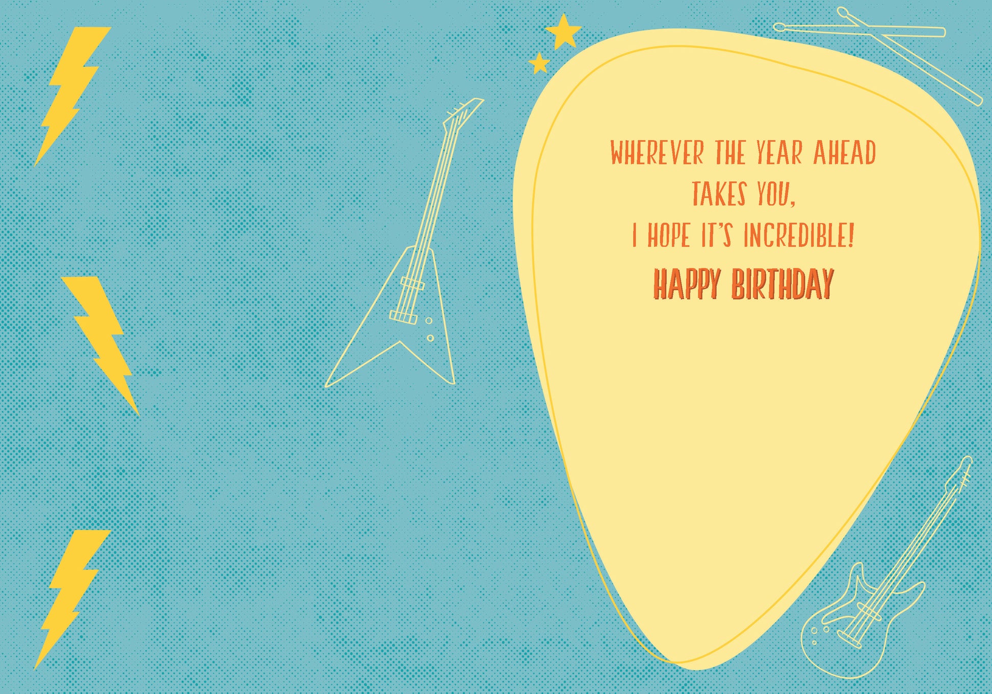 Inside Greeting: Wherever the year ahead takes you, I hope it's incredible! Happy Birthday.
