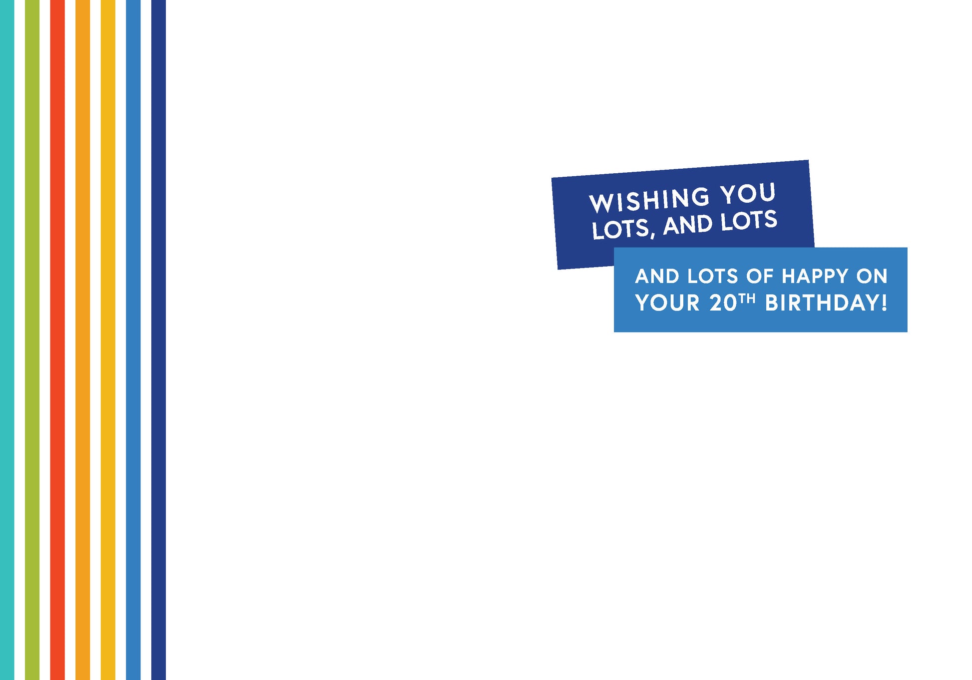 Inside Greeting: Wishing you lots, and lots, and lots of happy on your 20th birthday!