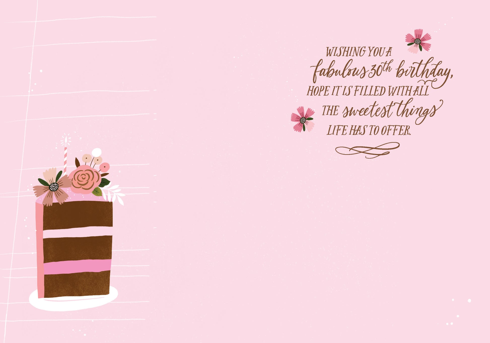 Inside Greeting: Wishing you a fabulous 30th birthday, hope it is filled with all the sweetest things life has to offer.