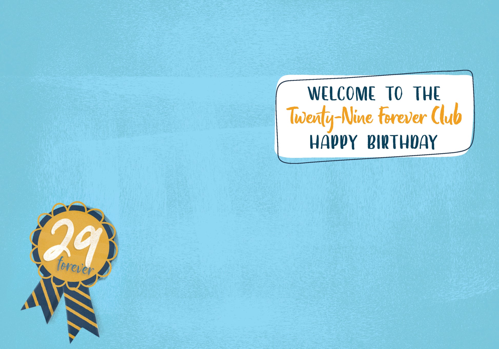 Inside Greeting: Welcome to the Twenty-Nine Forever Club. Happy Birthday.