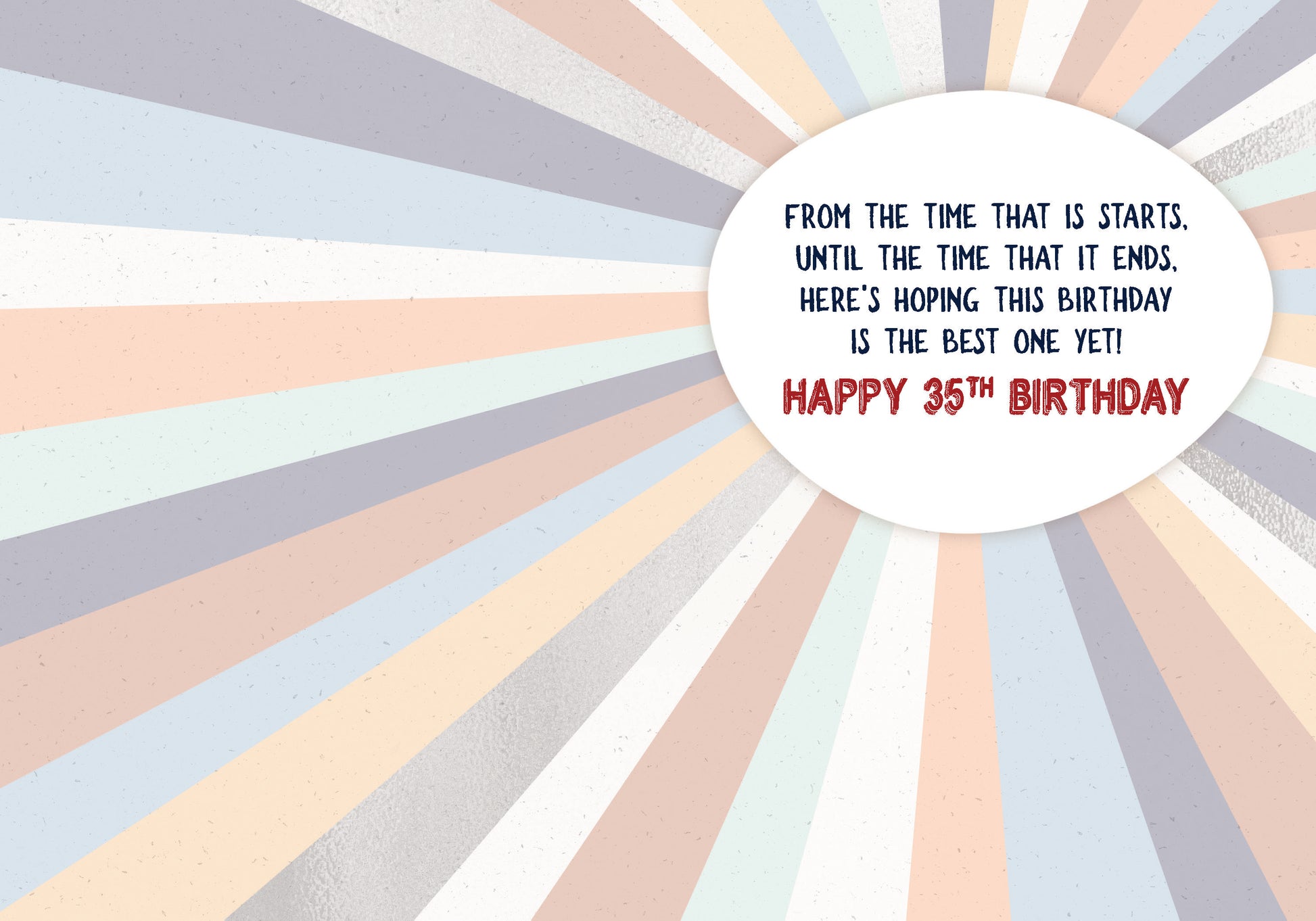 Inside Greeting: From the time that is starts, until the time that it ends, here's hoping this birthday is the best one yet! Happy 35th Birthday.