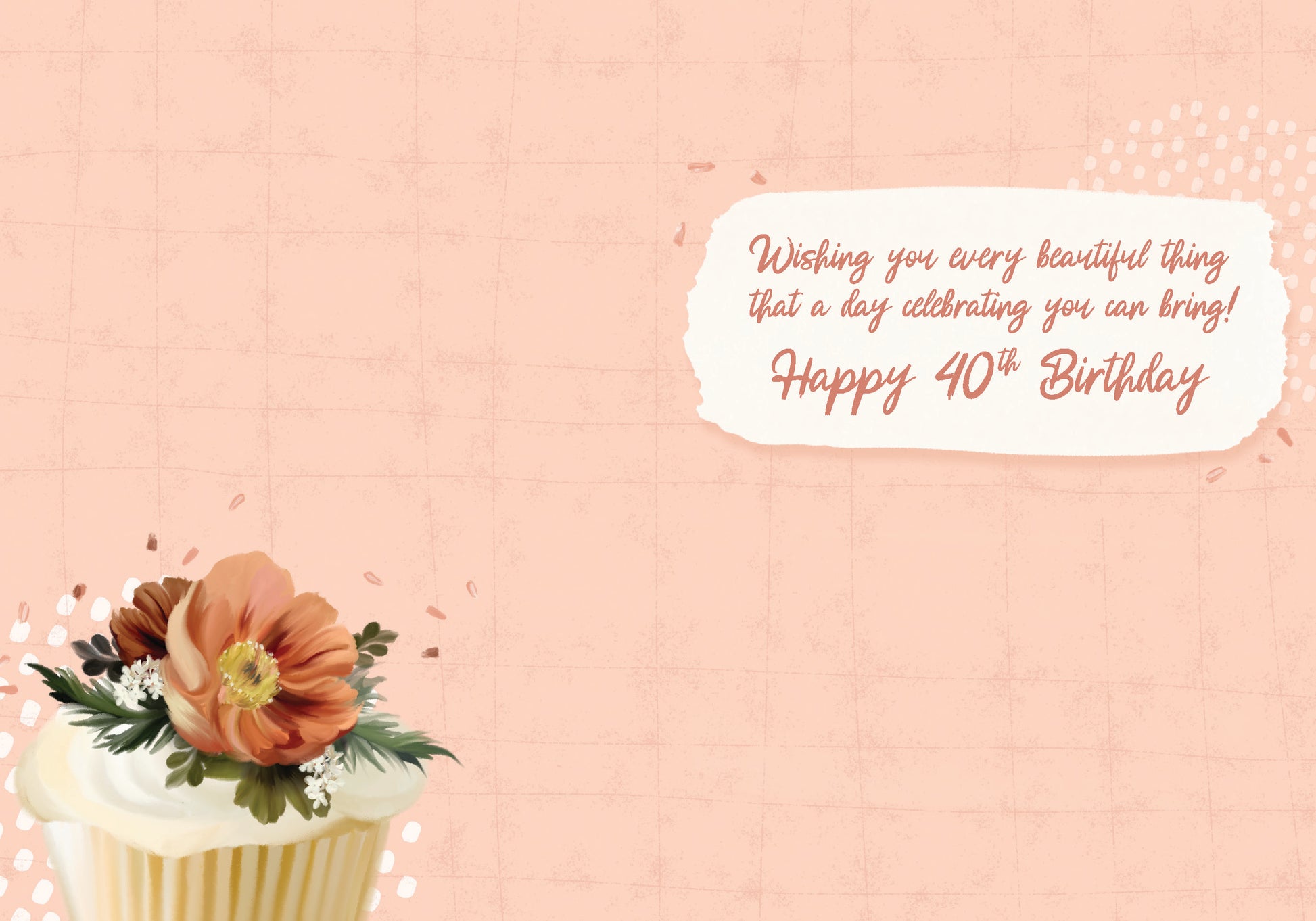 Inside Greeting: Wishing you every beautiful thing that a day celebrating you can bring. Happy 40th Birthday.