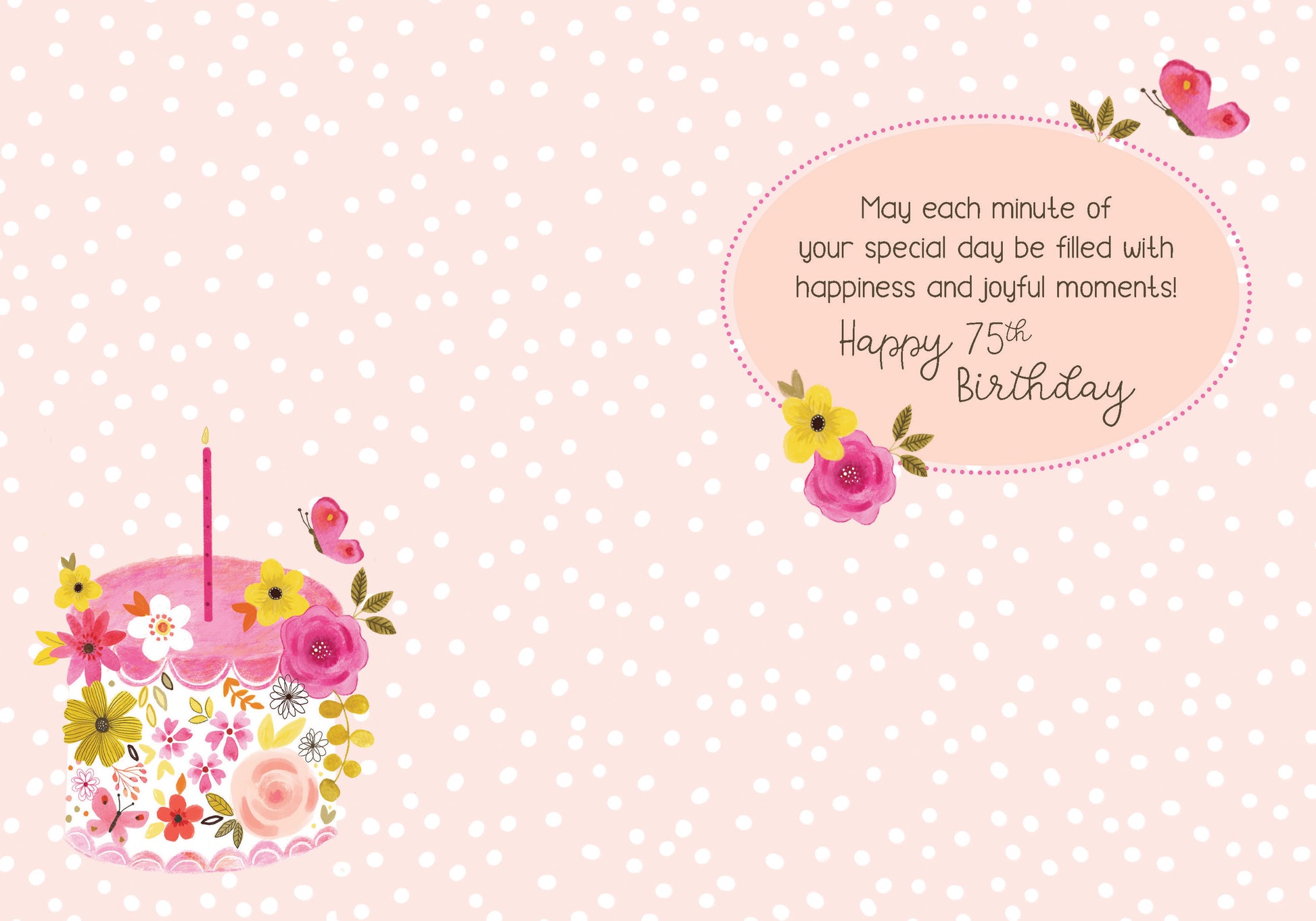 Inside Greeting: May each minute of your special day be filled with happiness and joyful moments! Happy 75th Birthday.