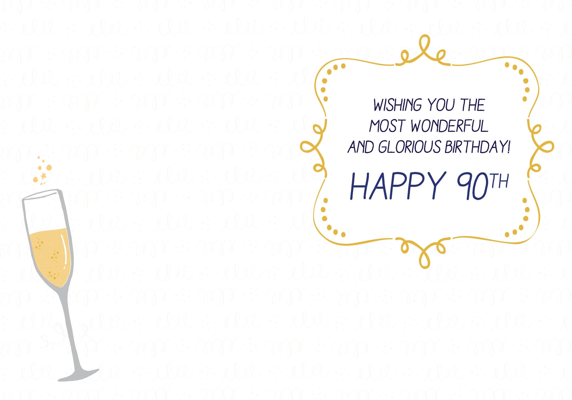 Inside Greeting: Wishing you the most wonderful and glorious birthday! Happy 90th.