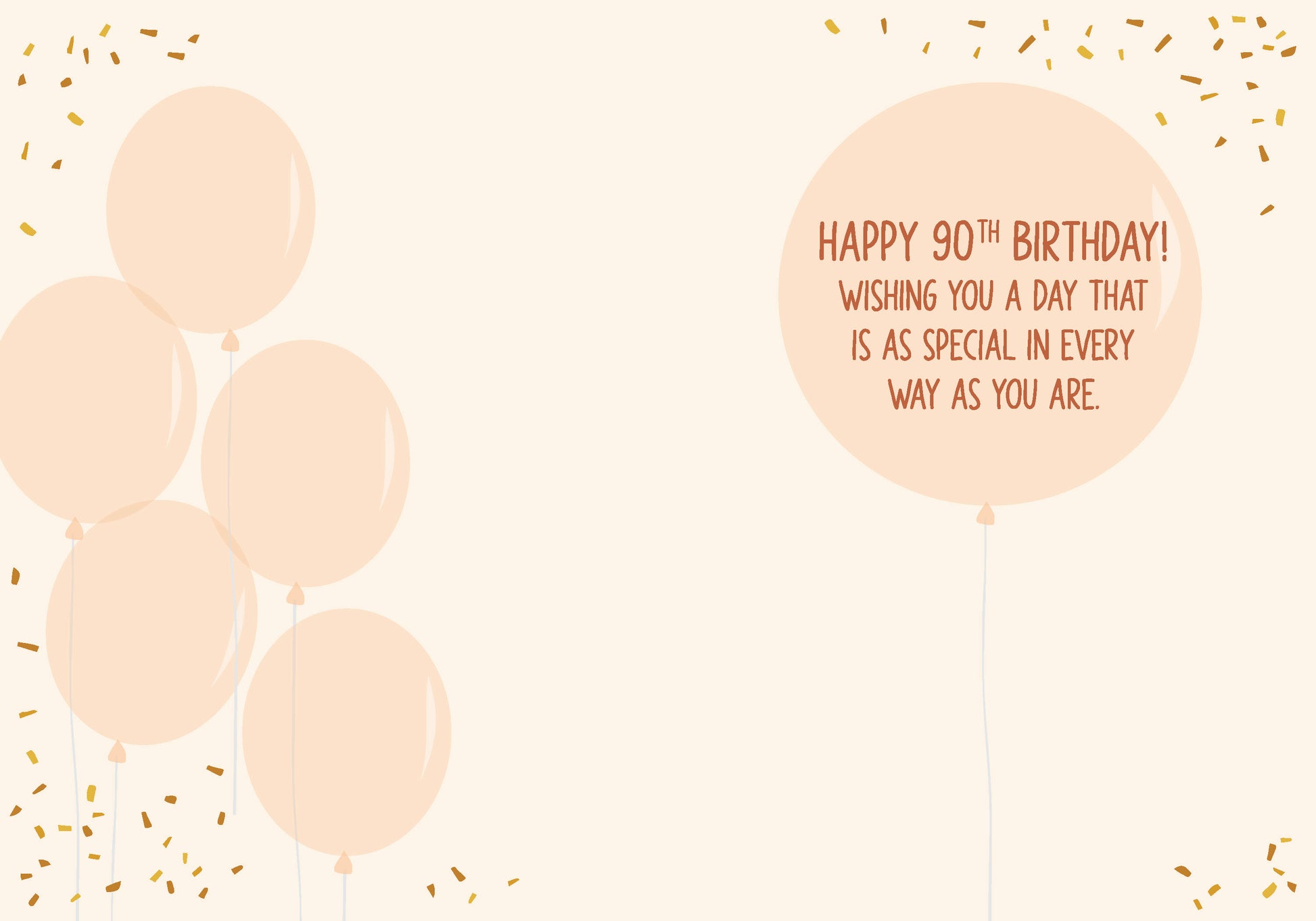 Inside Greeting: Wishing you a day that is as special in every way as you are. Happy 90th Birthday.