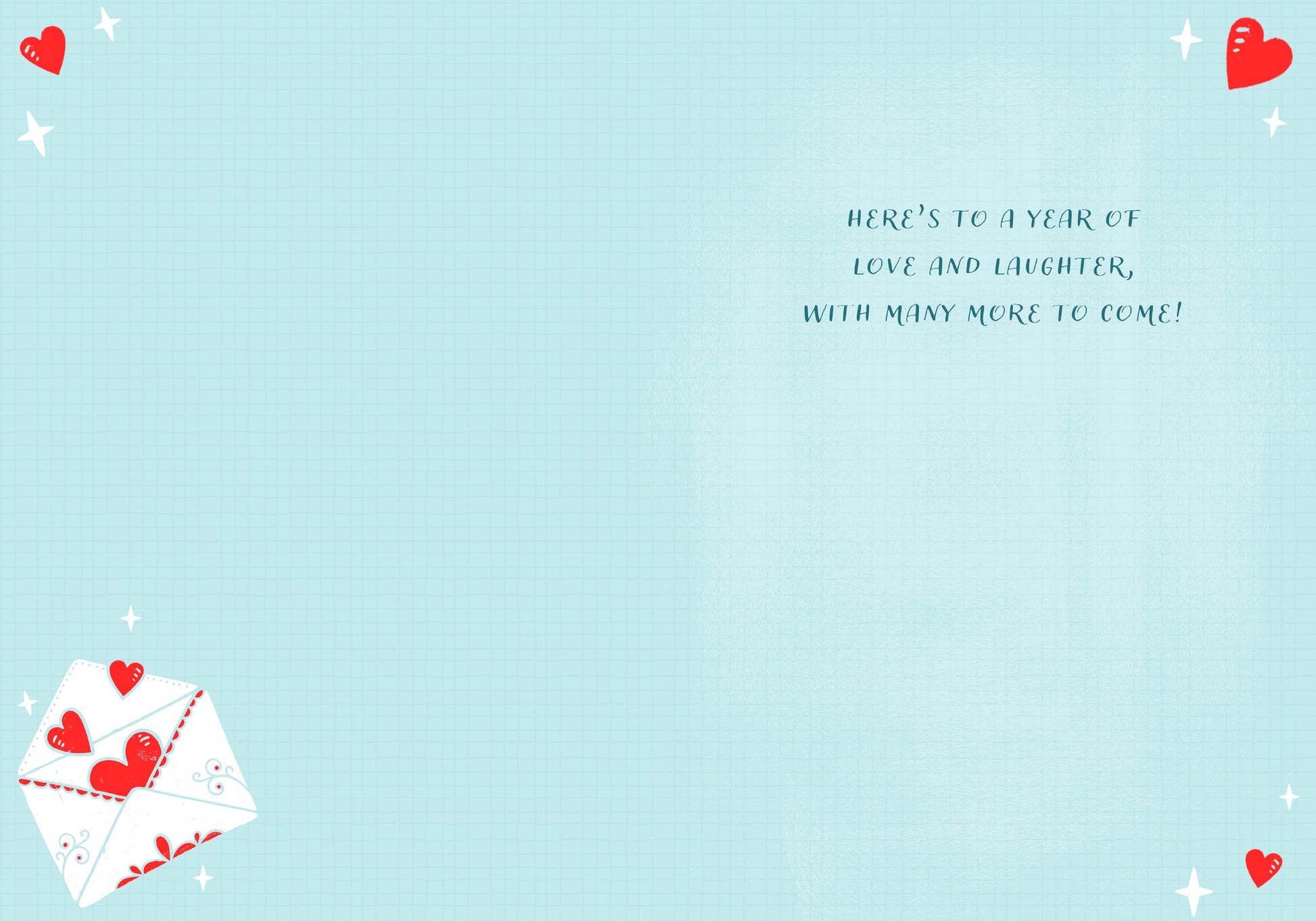 Inside Greeting: Here's to a year of love and laughter, with many more to come! .
