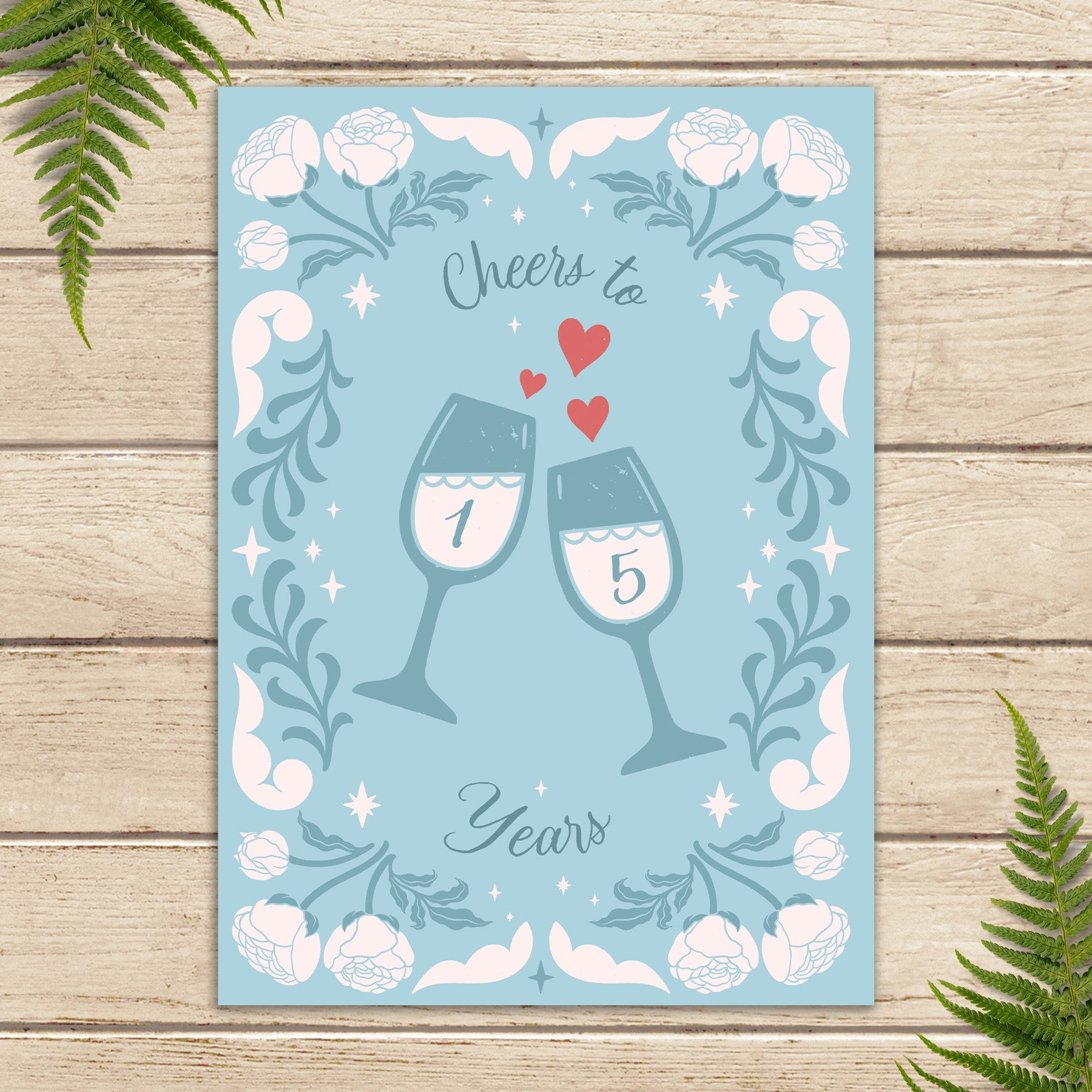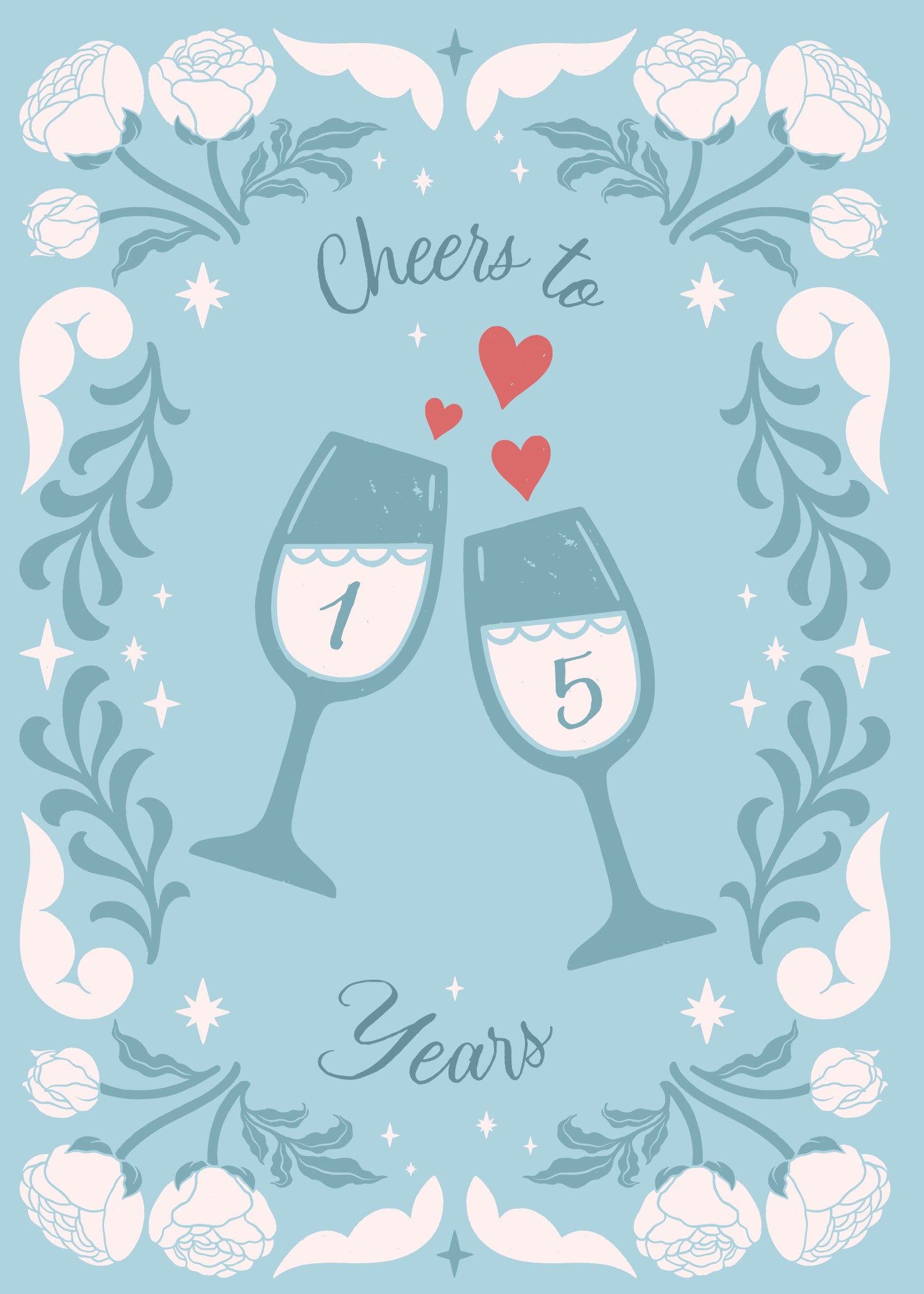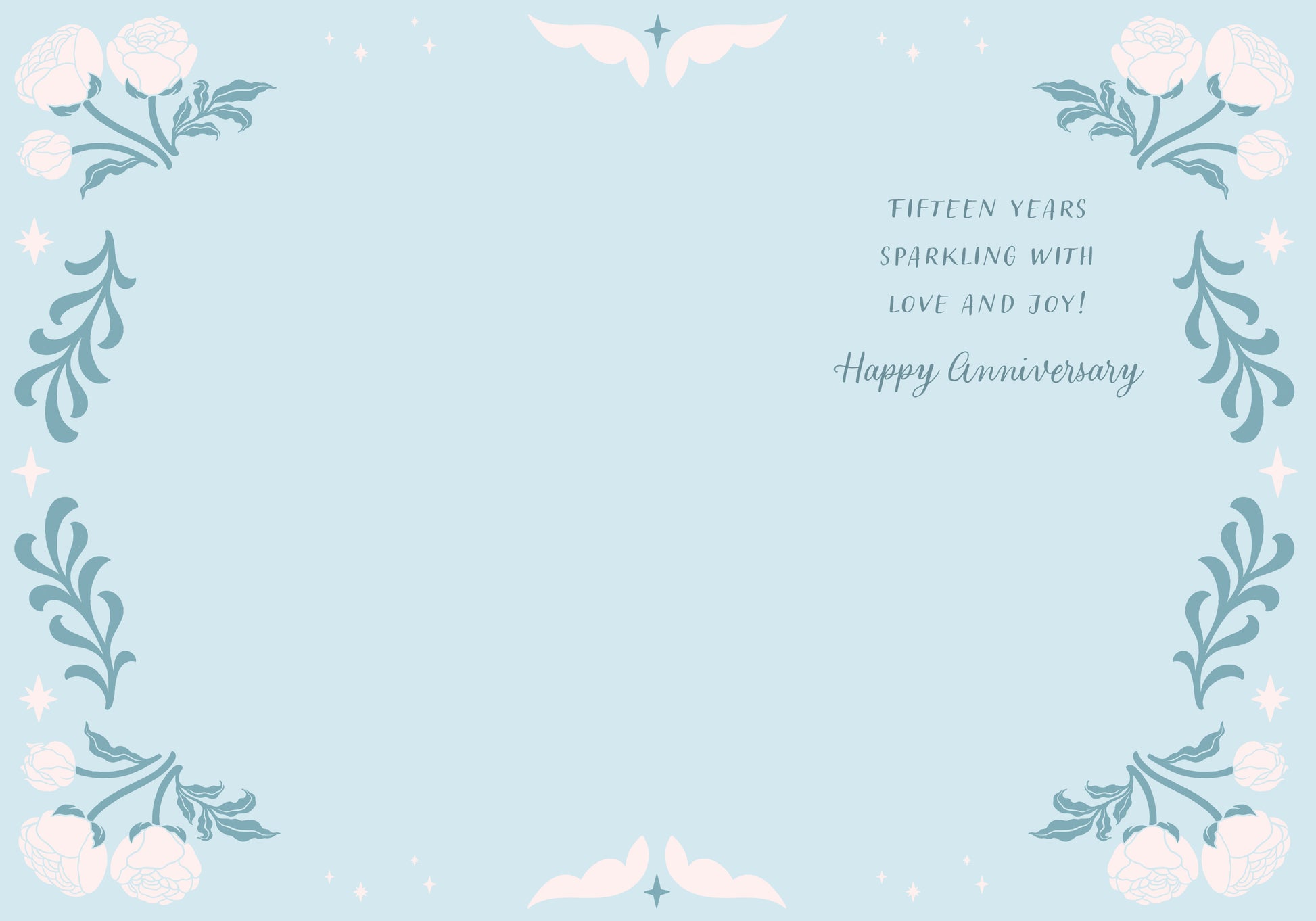 Inside Greeting: Fifteen years, sparkling with love and joy! Happy Anniversary.