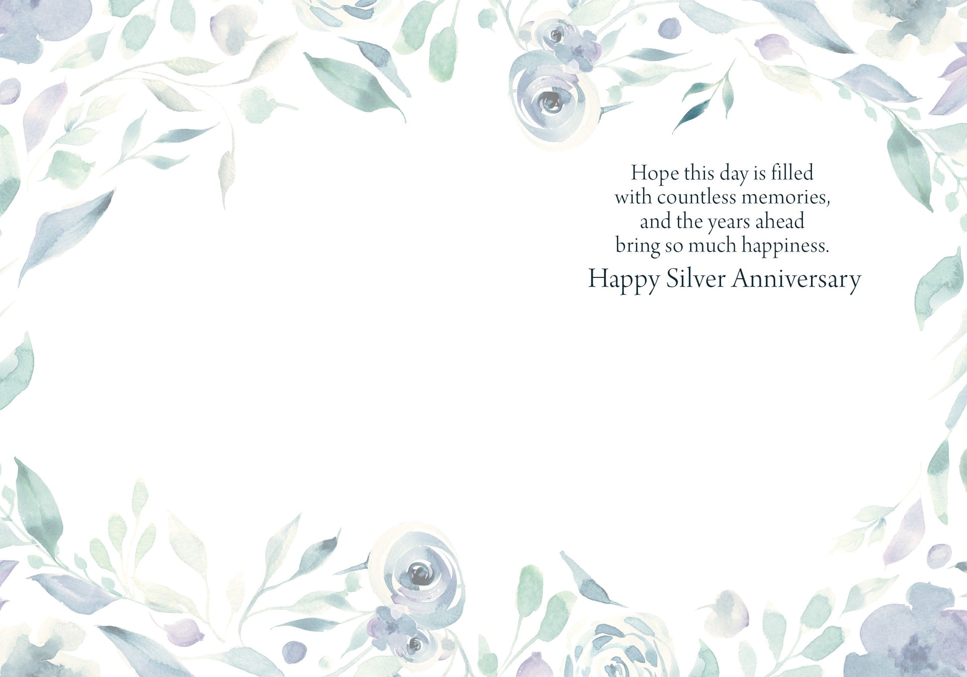 Inside Greeting: Hope this day is filled with countless memories, and the years ahead bring so much happiness. Happy Silver Anniversary.