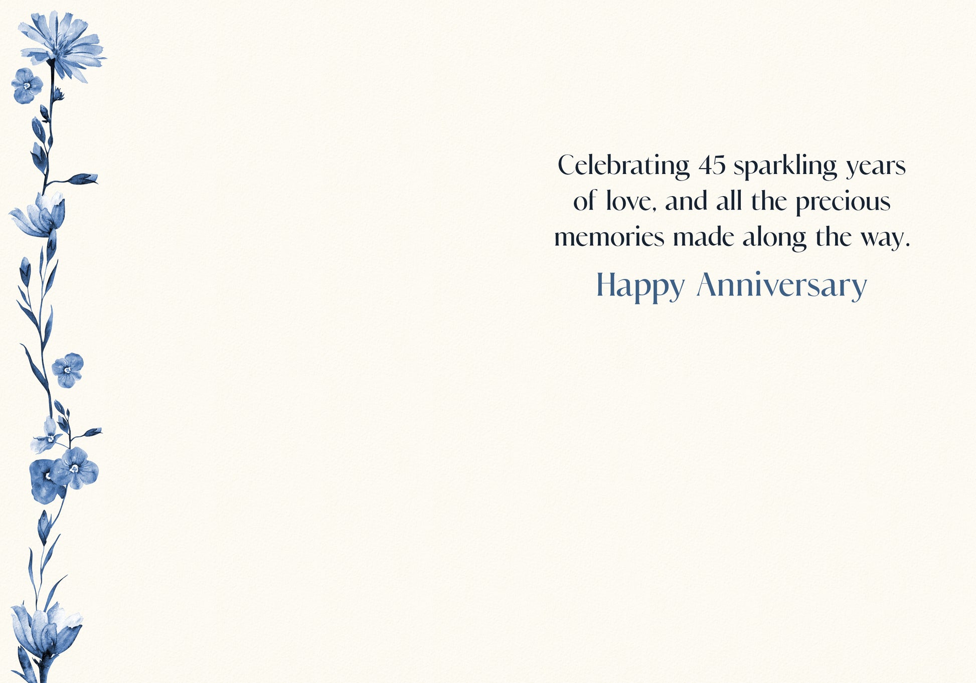 Inside Greeting: Celebrating 45 sparkling years of love, and all the precious memories made along the way. Happy Anniversary.