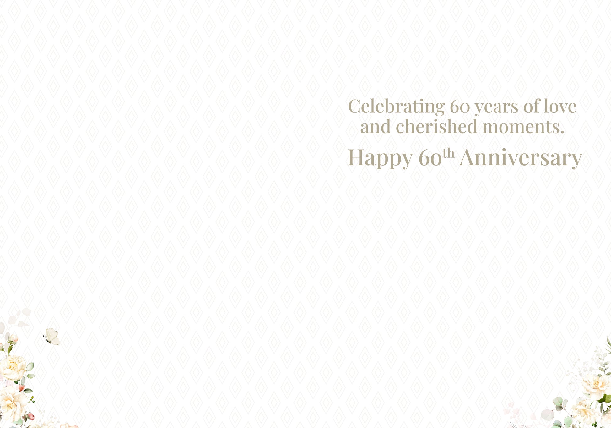 Inside Greeting: Celebrating 60 years of love and cherished moments. Happy 60th Anniversary.