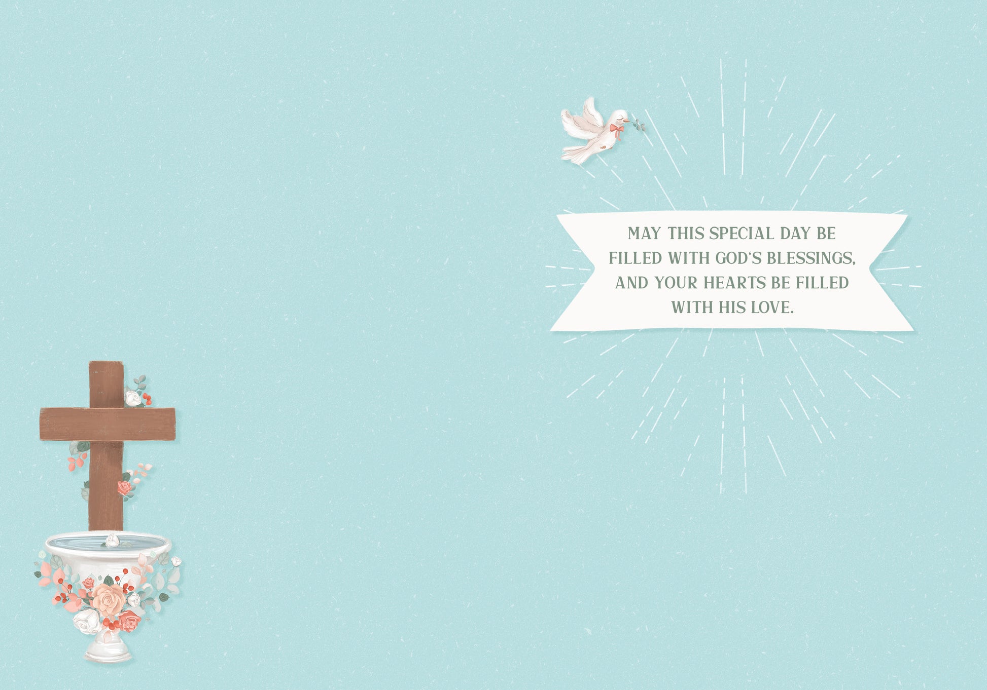 Inside Greeting: May this special day be filled with God's blessings, and your hearts be filled with His love.