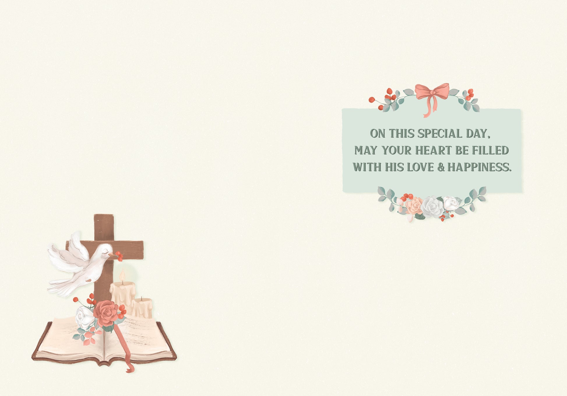 Inside Greeting: On this special day, may your heart be filled with His love & happiness.