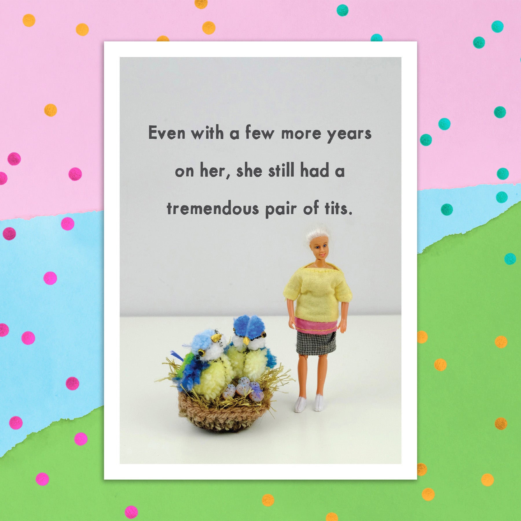 This greeting card measures 5" x 7" and comes with a coordinating colorful envelope.
