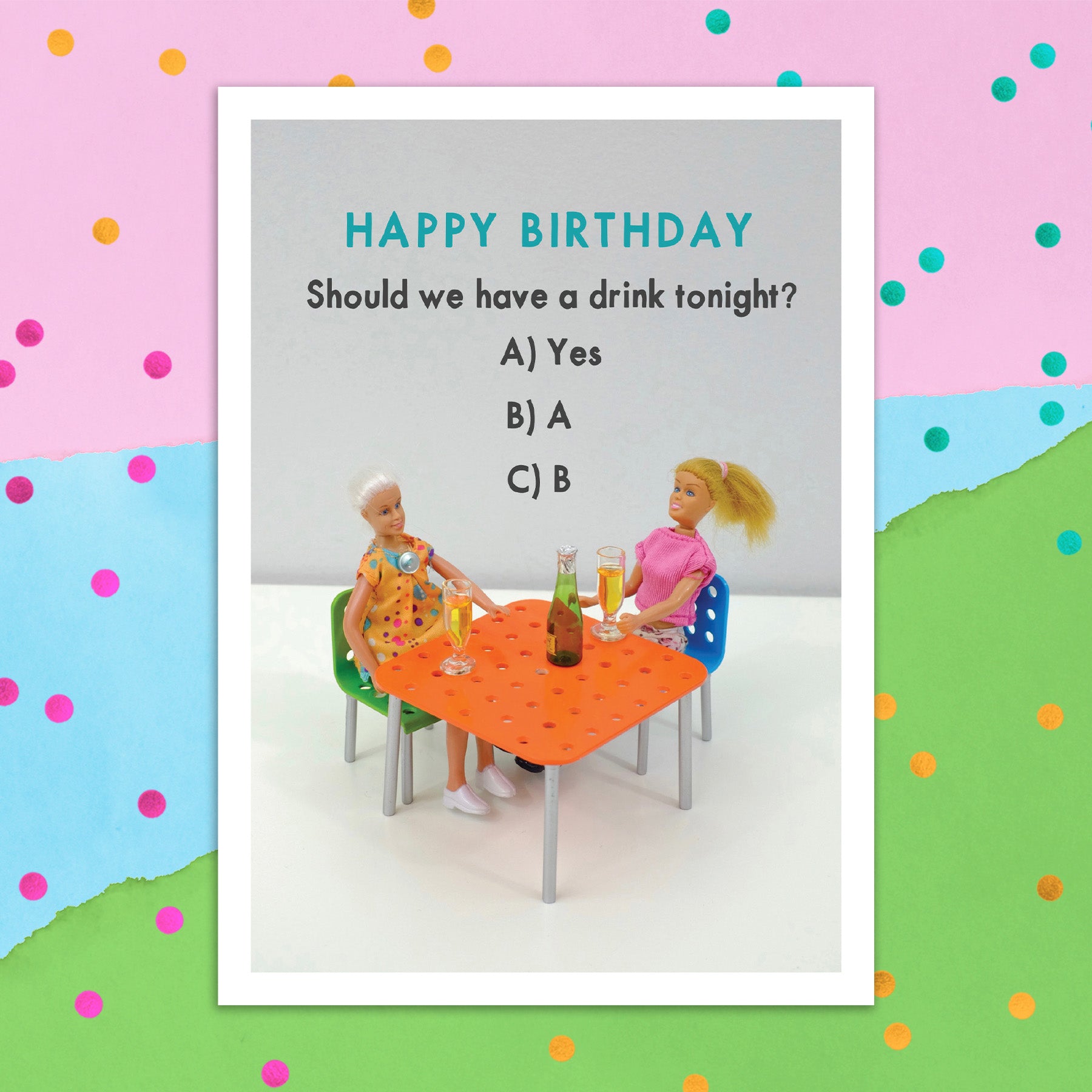 Inside Greeting: What should we drink. A) Wine B) Tequila C) Both.