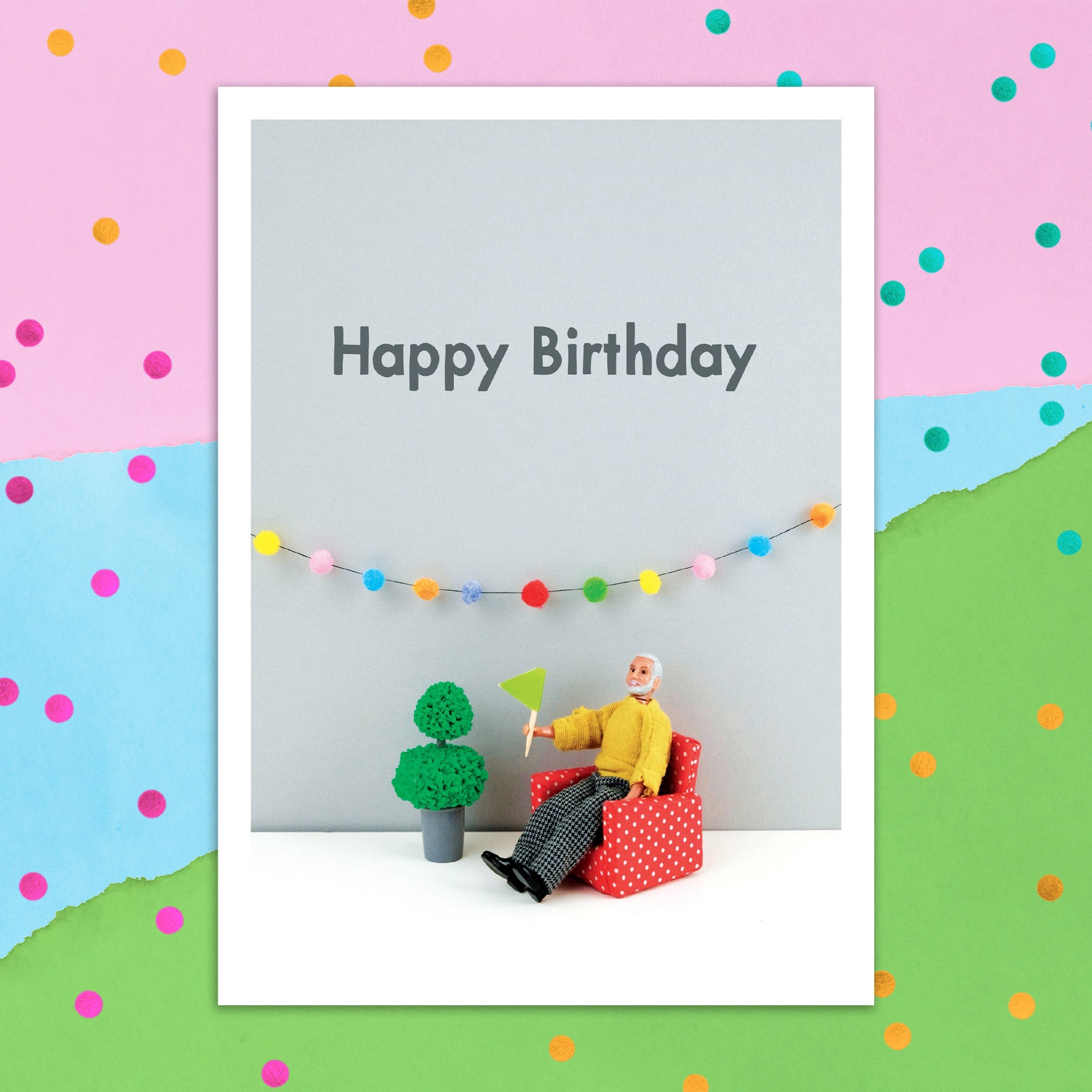 This greeting card measures 5" x 7" and comes with a coordinating colorful envelope.