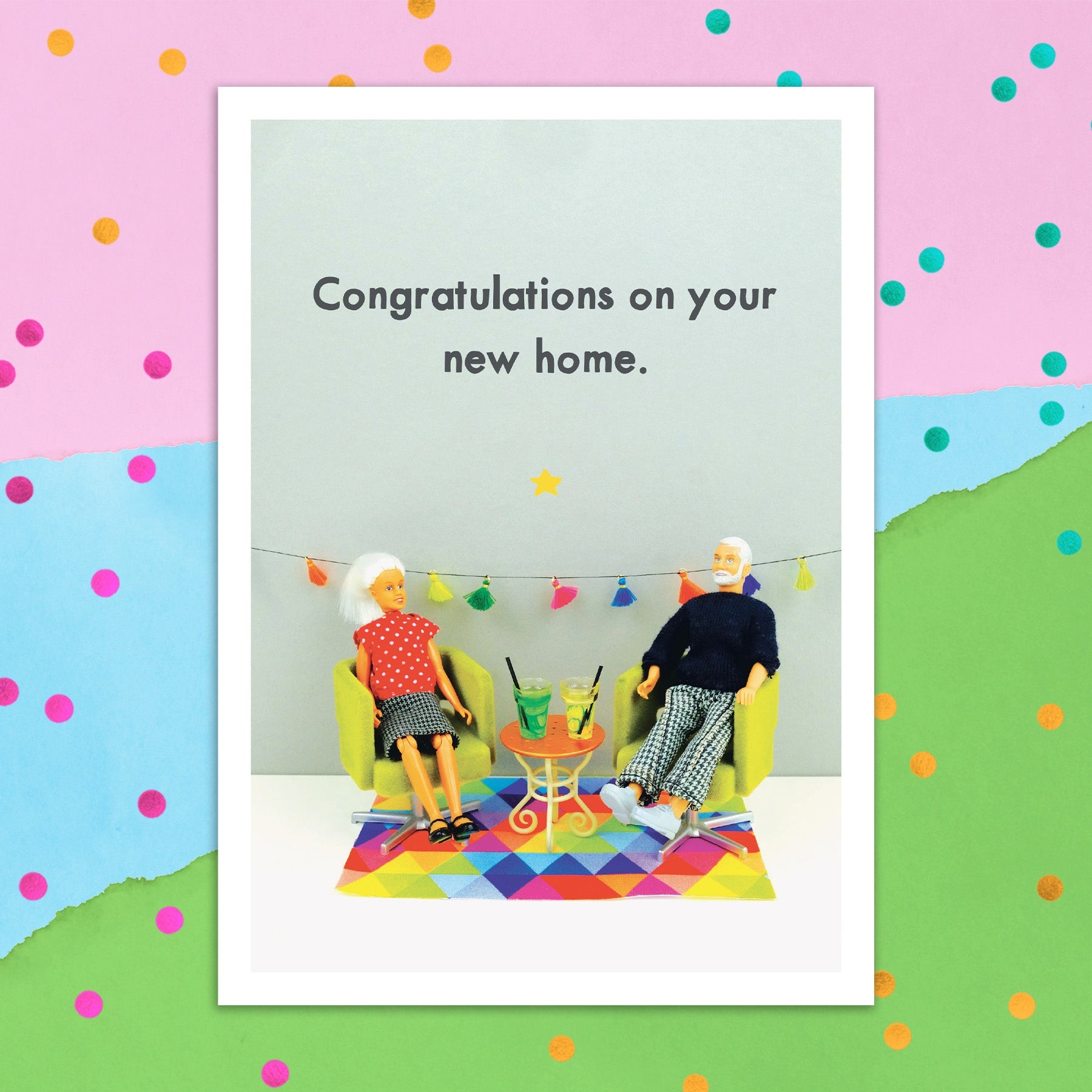 This greeting card measures 5" x 7" and comes with a coordinating colorful envelope.
