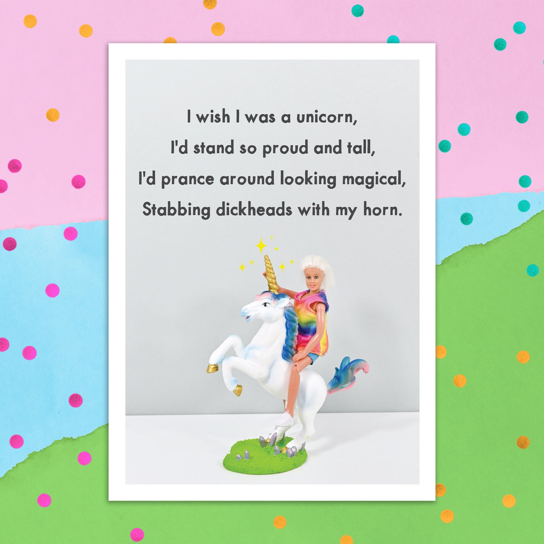 This greeting card measures 5" x 7" and comes with a coordinating colorful envelope.