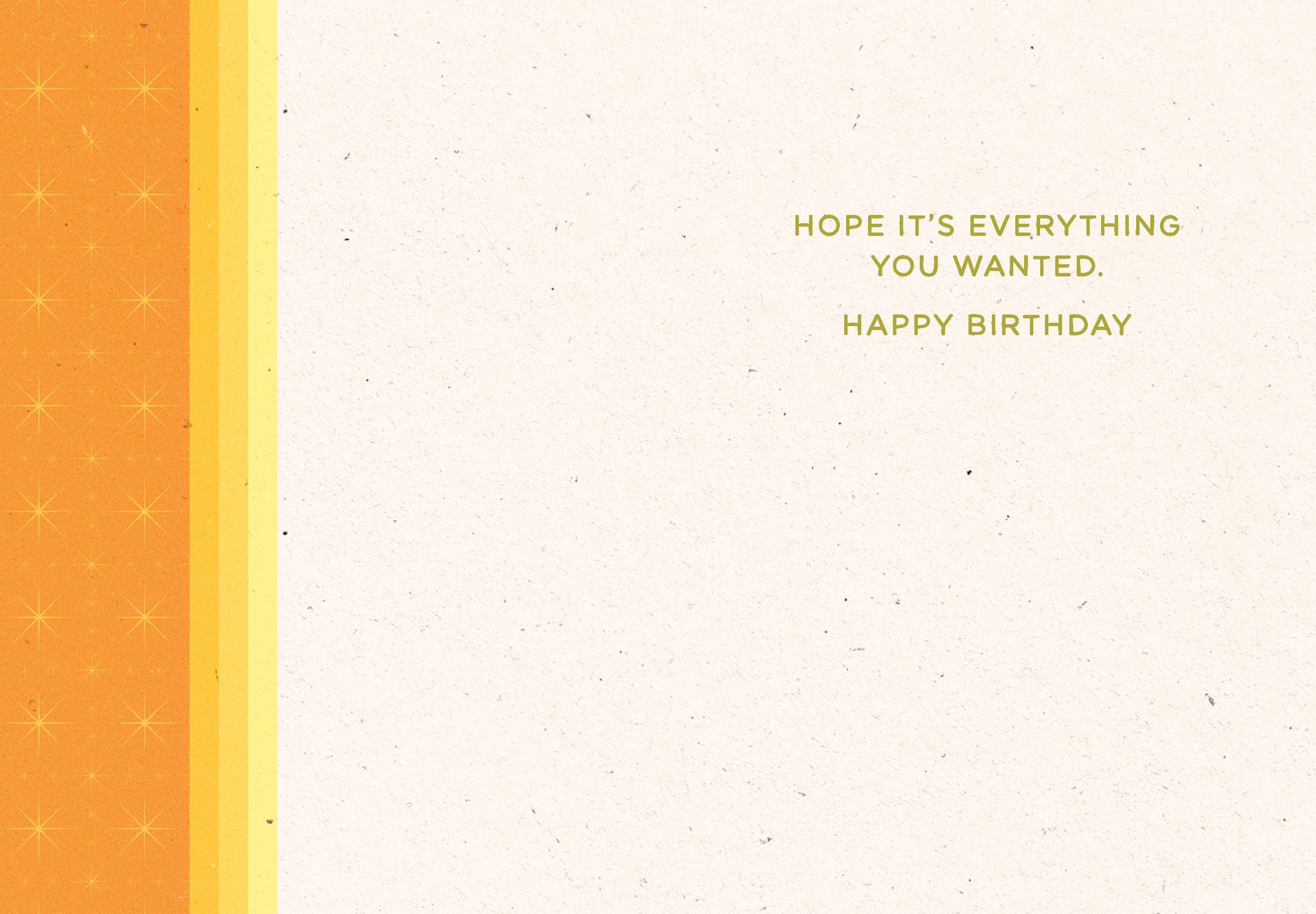 Inside Greeting: Hope it's everything you wanted. Happy Birthday.