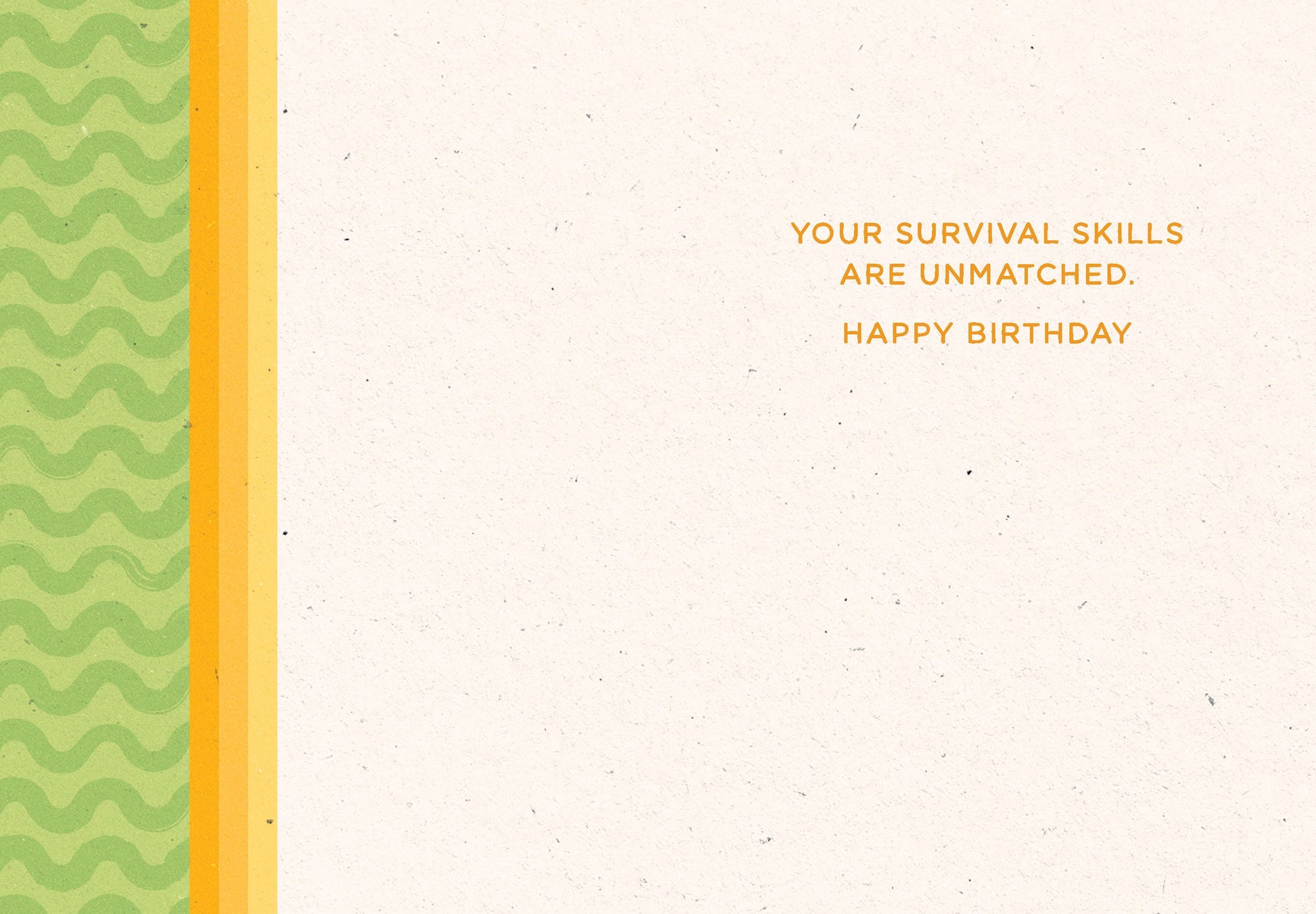 Inside Greeting: Your survival skills are unmatched. Happy Birthday.