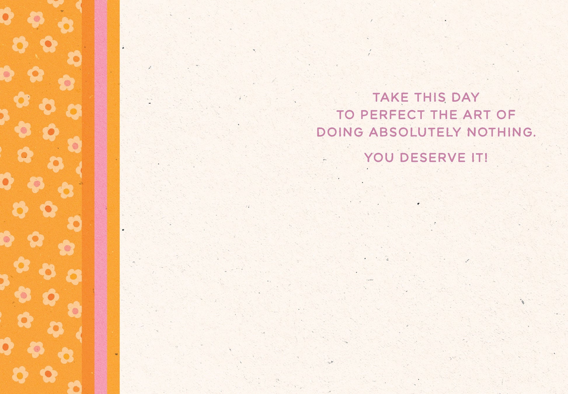 Inside Greeting: Take this day to perfect the art of doing absolutely nothing. You deserve it!