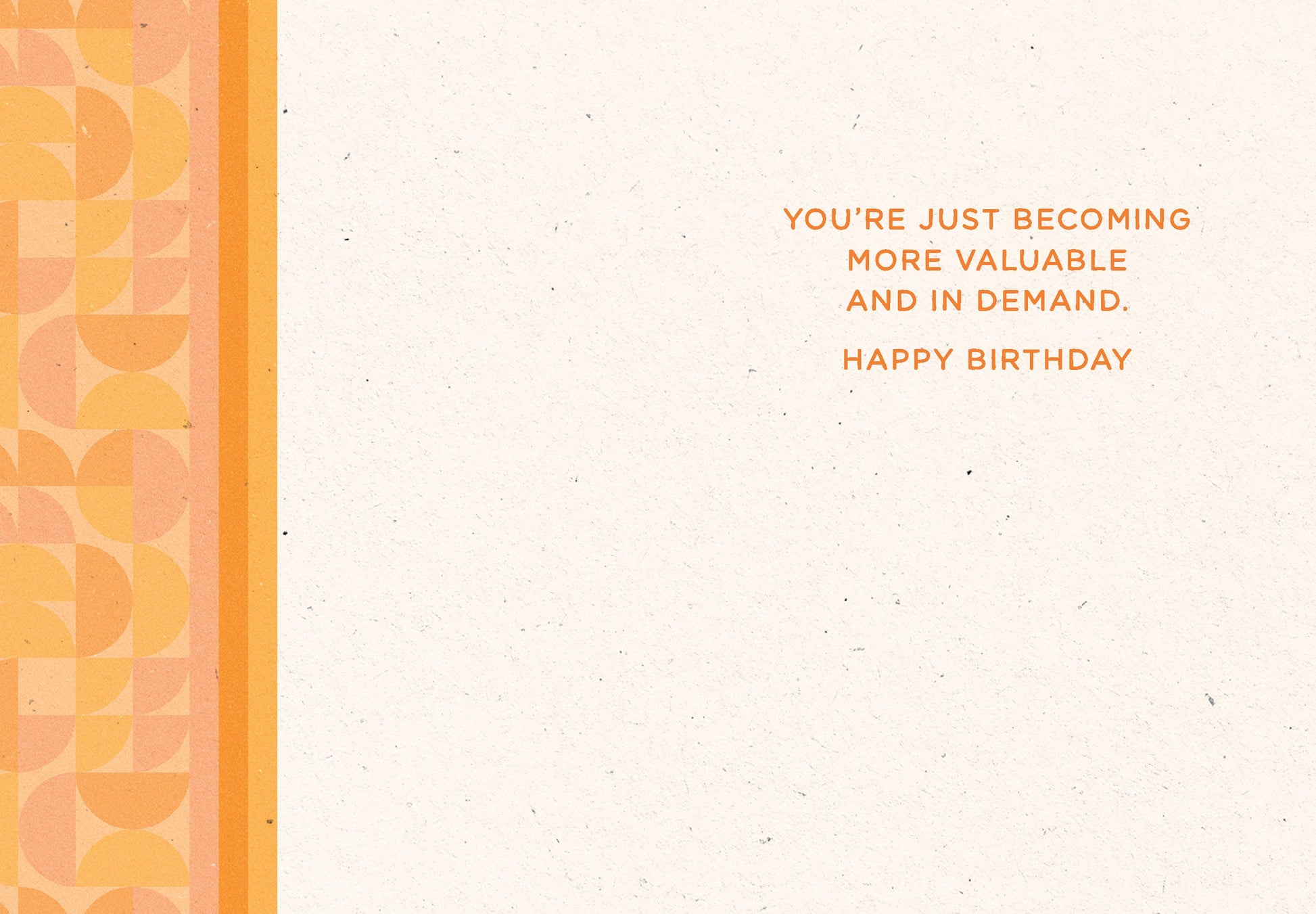 Inside Greeting: You're just becoming more valuable and in demand. Happy Birthday.