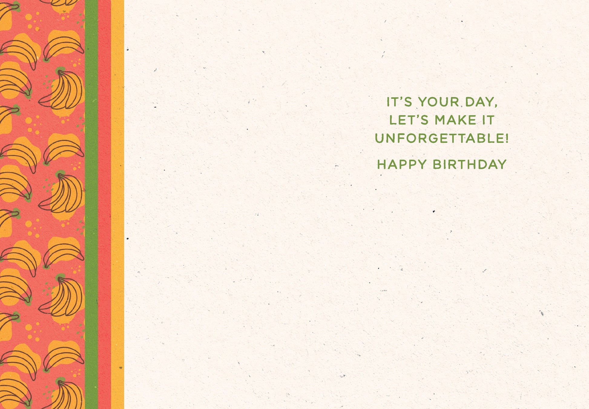 Inside Greeting: It's your day, let's make it unforgettable! Happy Birthday.