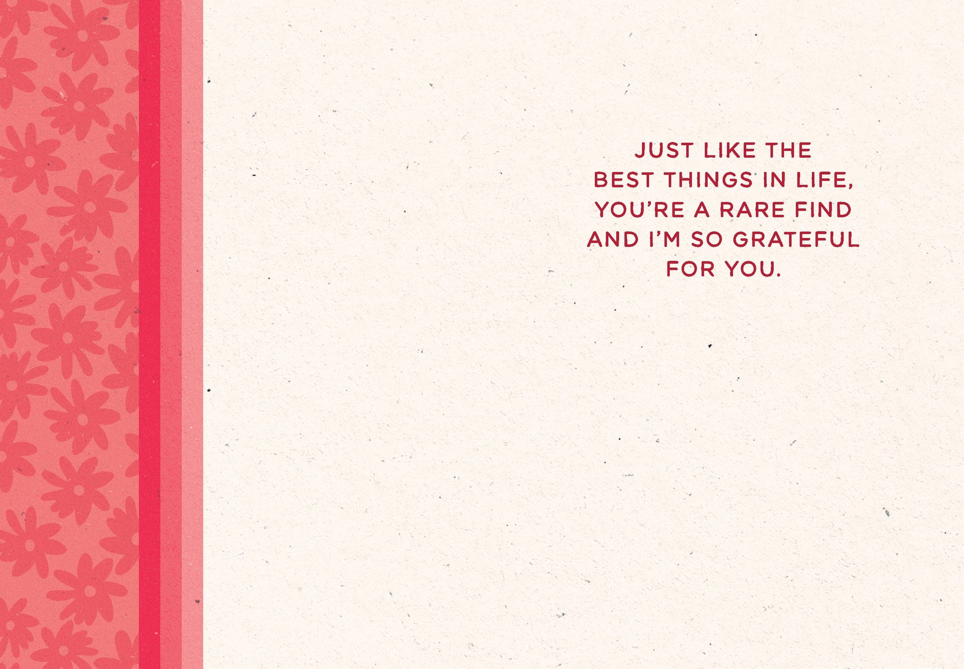 Inside Greeting: Just like the best things in life, you're a rare find and I'm so grateful for you.