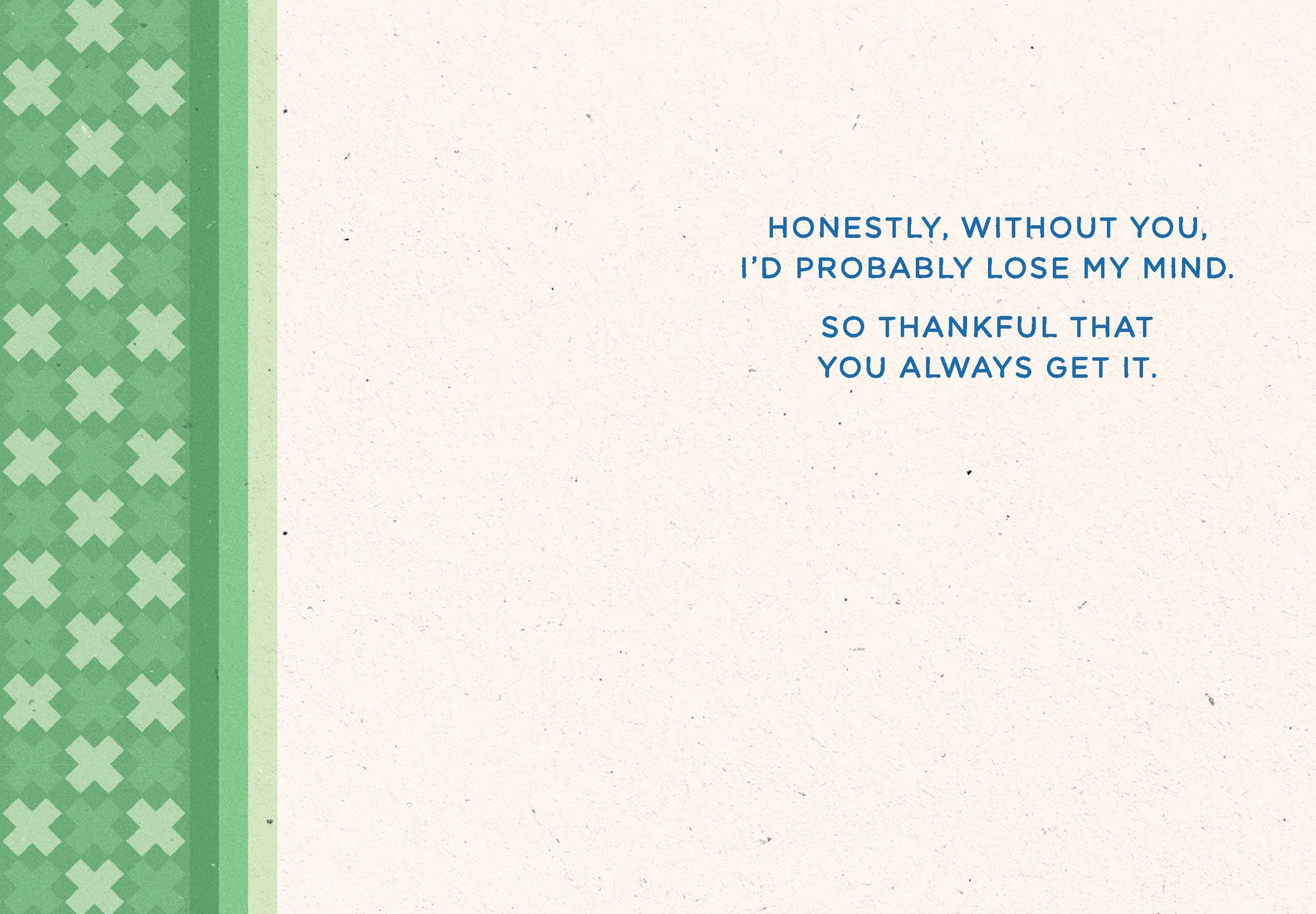 Inside Greeting: Honestly, without you, I'd probably lose my mind. So thankful that you always get it.