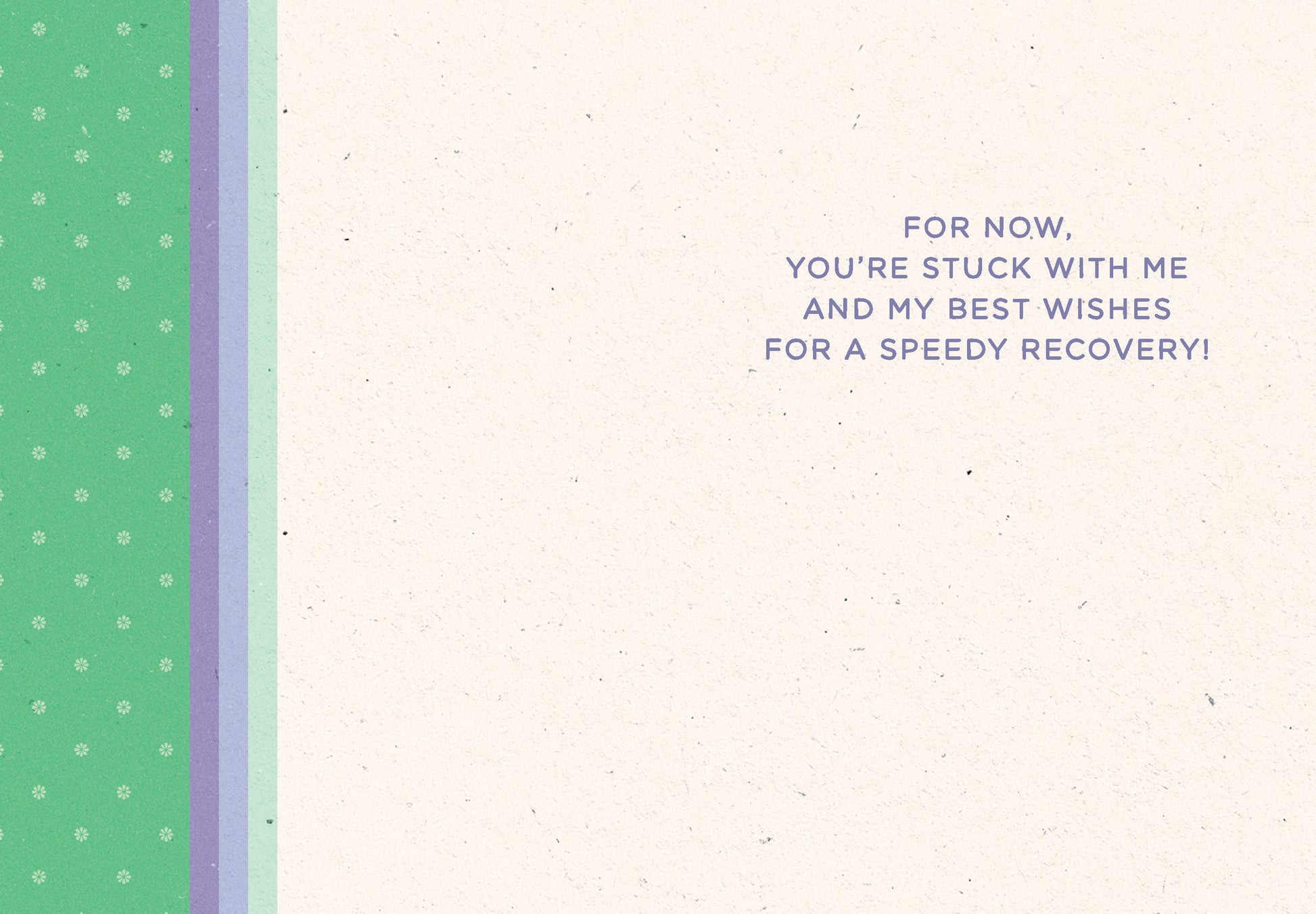 Inside Greeting: For now, you're stuck with me and my best wishes for a speedy recovery!