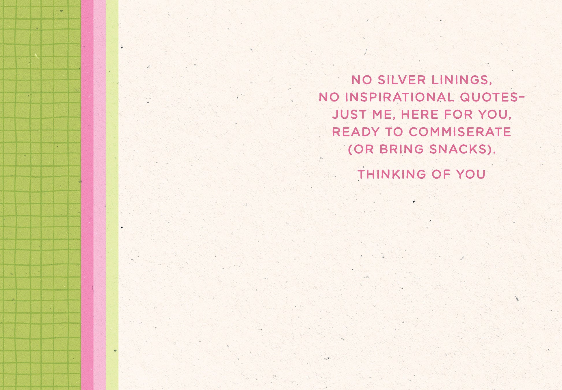 Inside Greeting: No silver linings, no inspirational quotes, just me, here for you, ready to commiserate (or bring snacks). Thinking of You