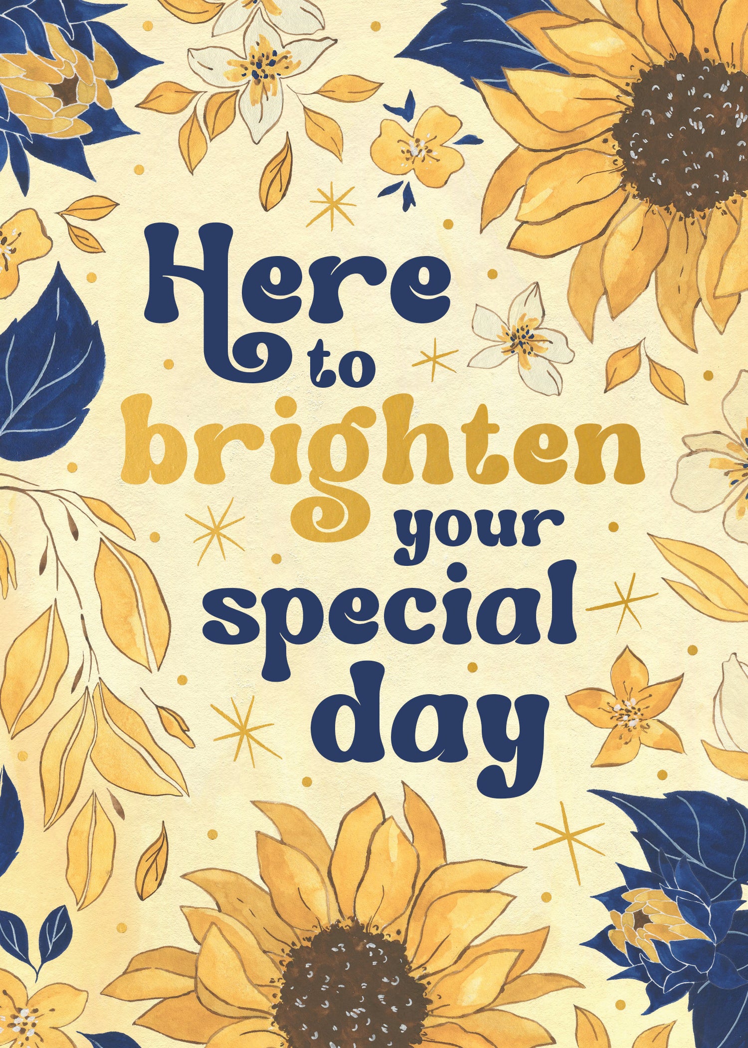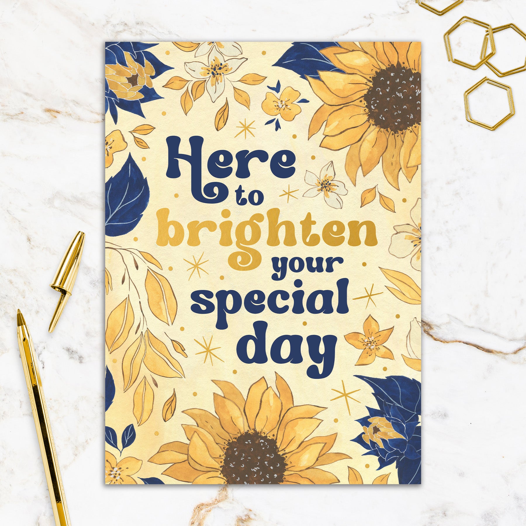 This greeting card measures 5" x 7" and is printed in full colour on matte laminated cards with a raised gold foil detailing. Each card comes with a coordinating colorful envelope.