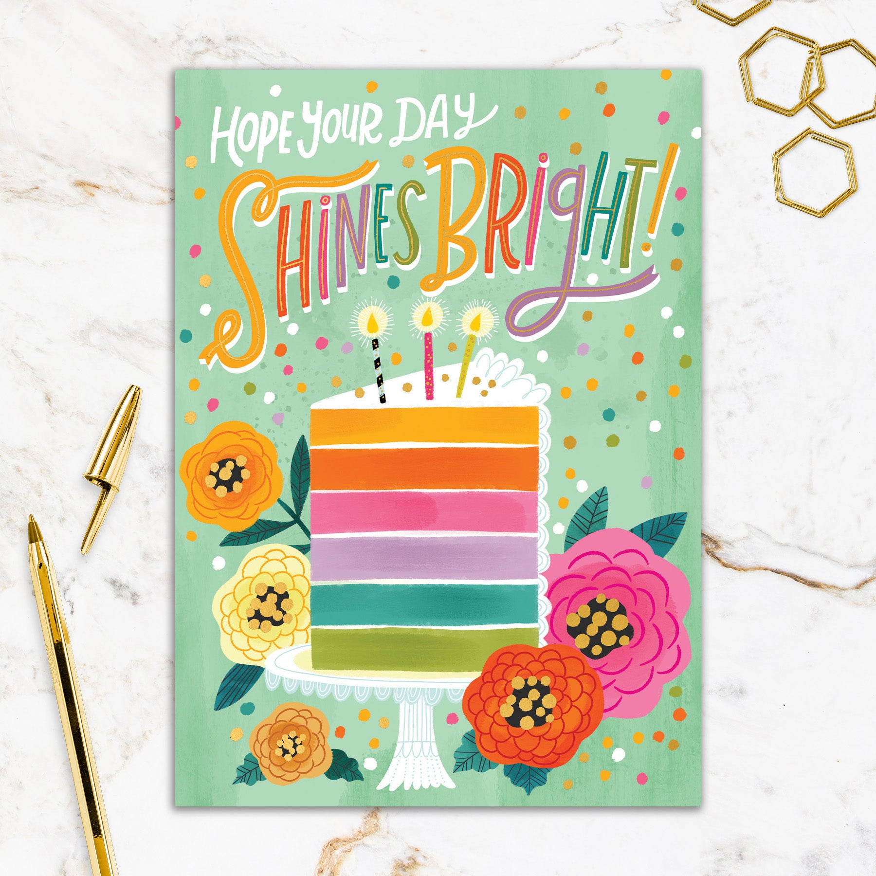 This greeting card measures 5" x 7" and is printed in full colour on matte laminated cards with a raised gold foil detailing. Each card comes with a coordinating colorful envelope.