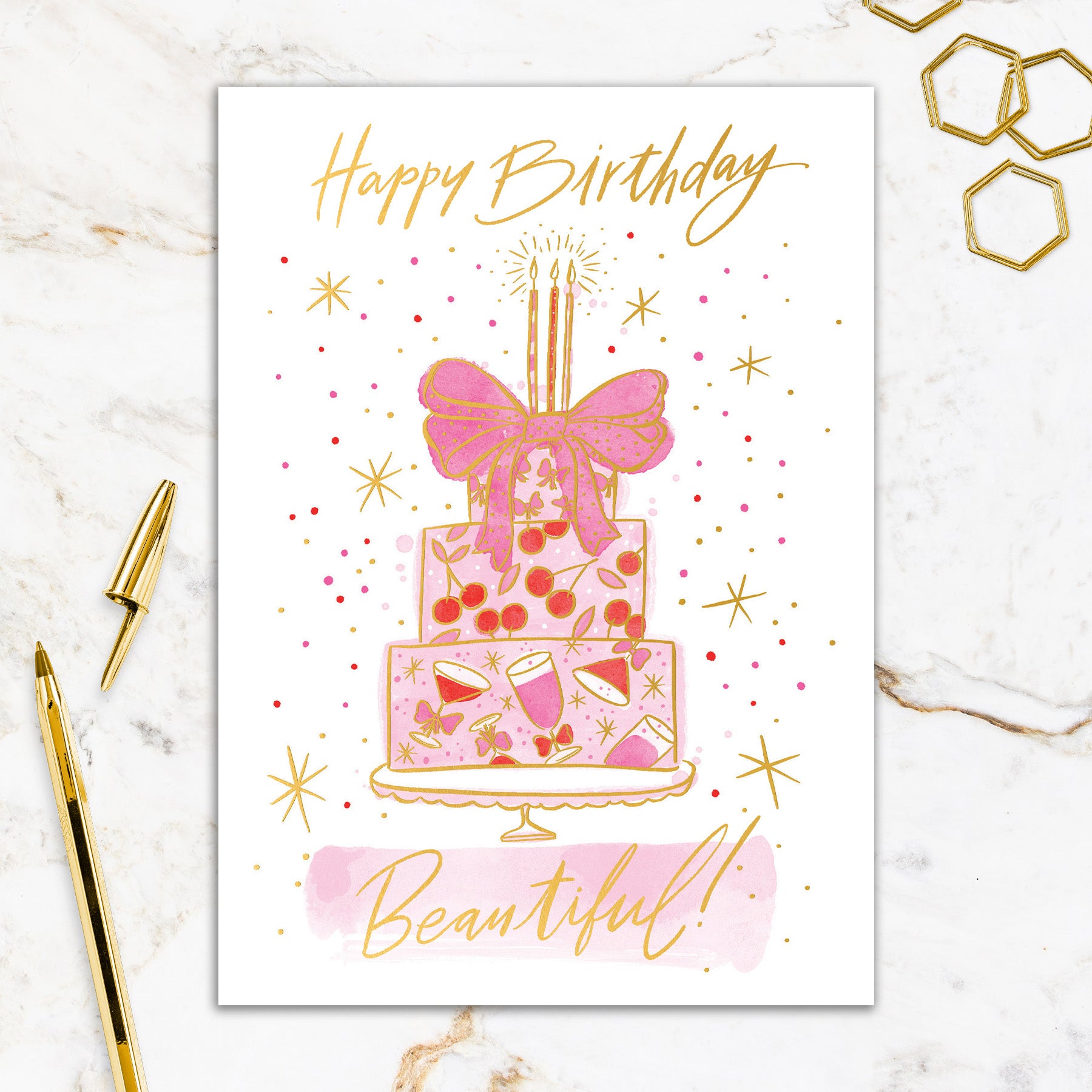 This greeting card measures 5" x 7" and is printed in full colour on matte laminated cards with a raised gold foil detailing. Each card comes with a coordinating colorful envelope.