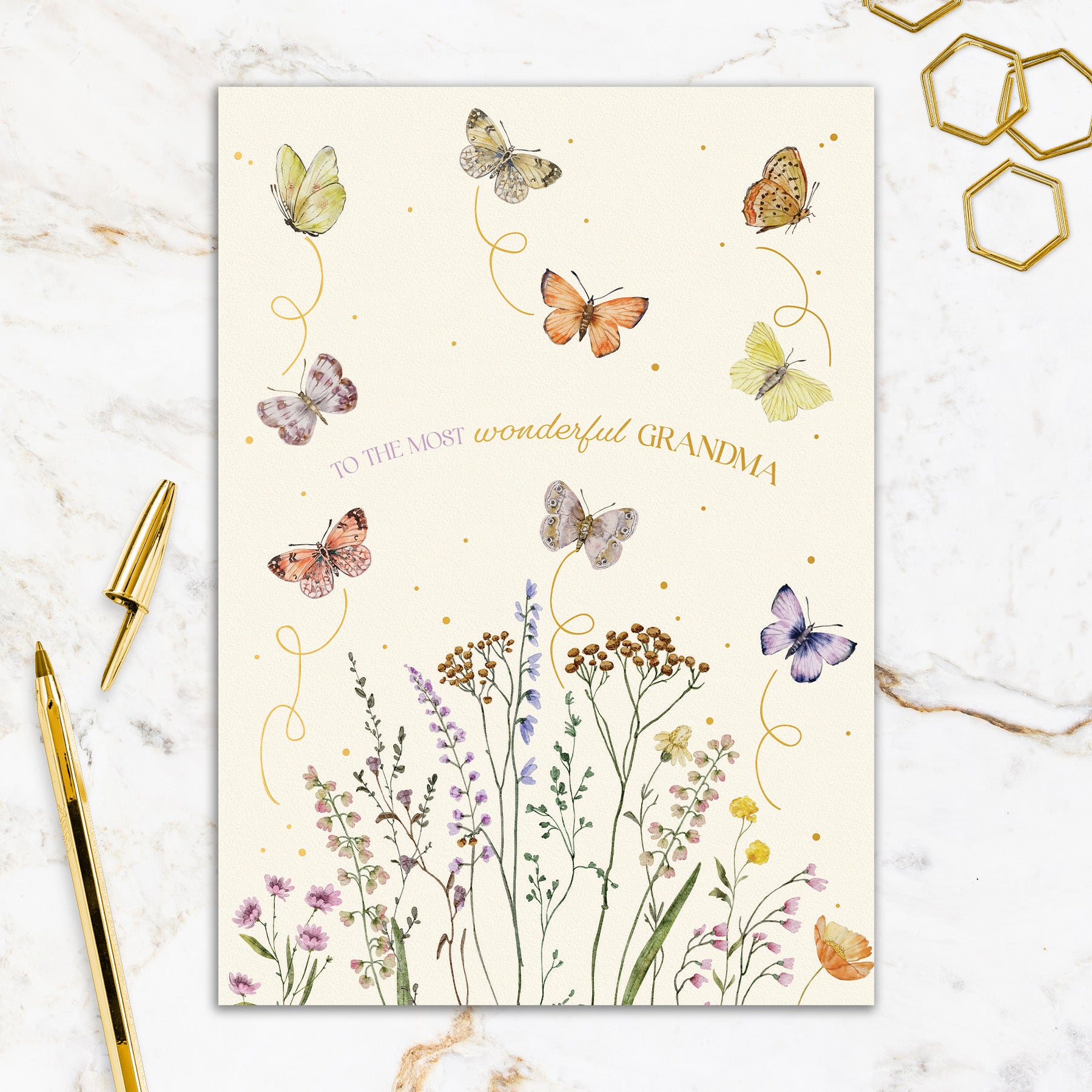 This greeting card measures 5" x 7" and is printed in full colour on matte laminated cards with a raised gold foil detailing. Each card comes with a coordinating colorful envelope.