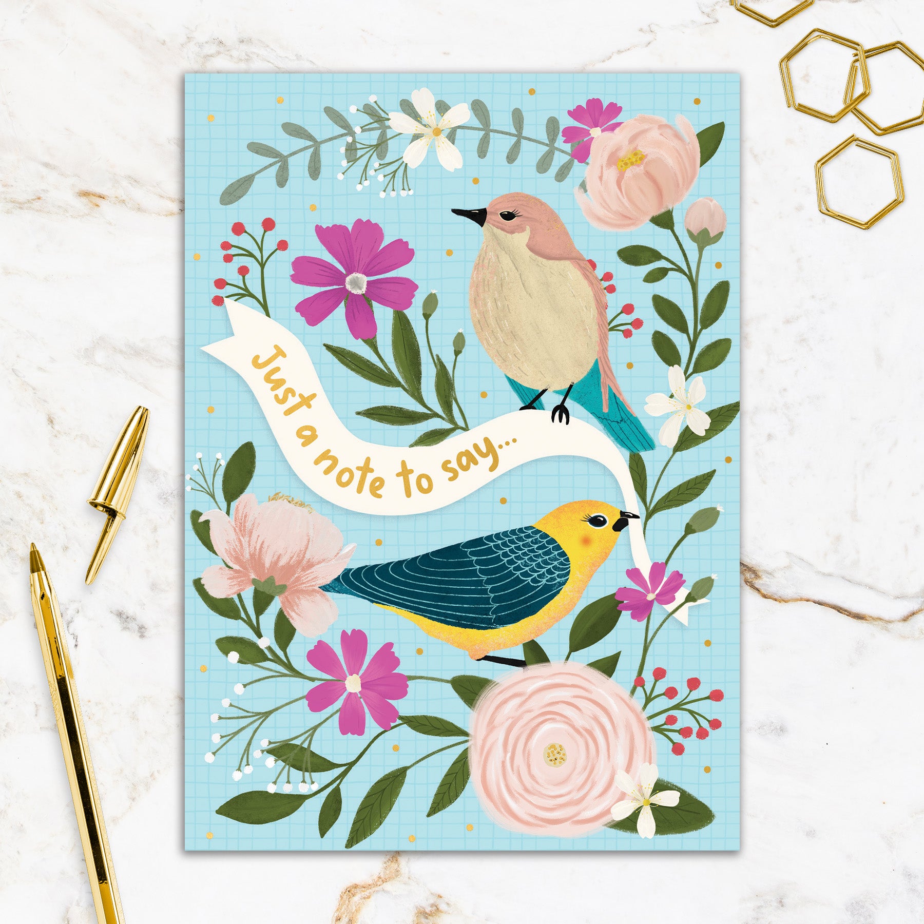 This greeting card measures 5" x 7" and is printed in full colour on matte laminated cards with a raised gold foil detailing. Each card comes with a coordinating colorful envelope.