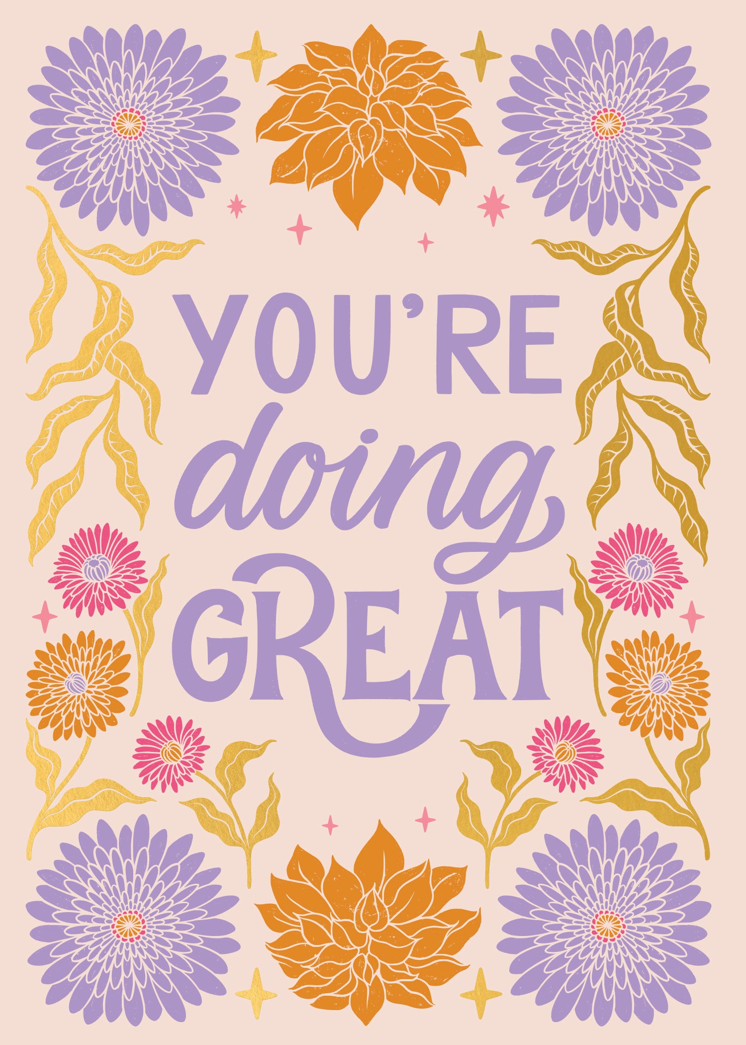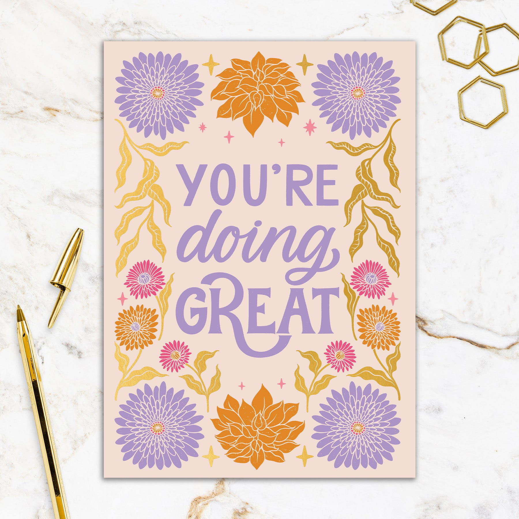 This greeting card measures 5" x 7" and is printed in full colour on matte laminated cards with a raised gold foil detailing. Each card comes with a coordinating colorful envelope.