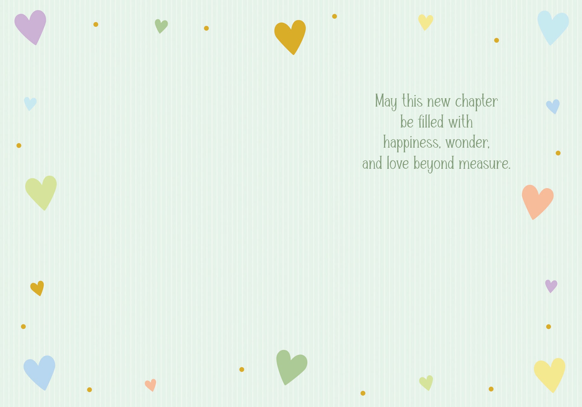 Inside Greeting: May this new chapter be filled with happiness, wonder, and love beyond measure.