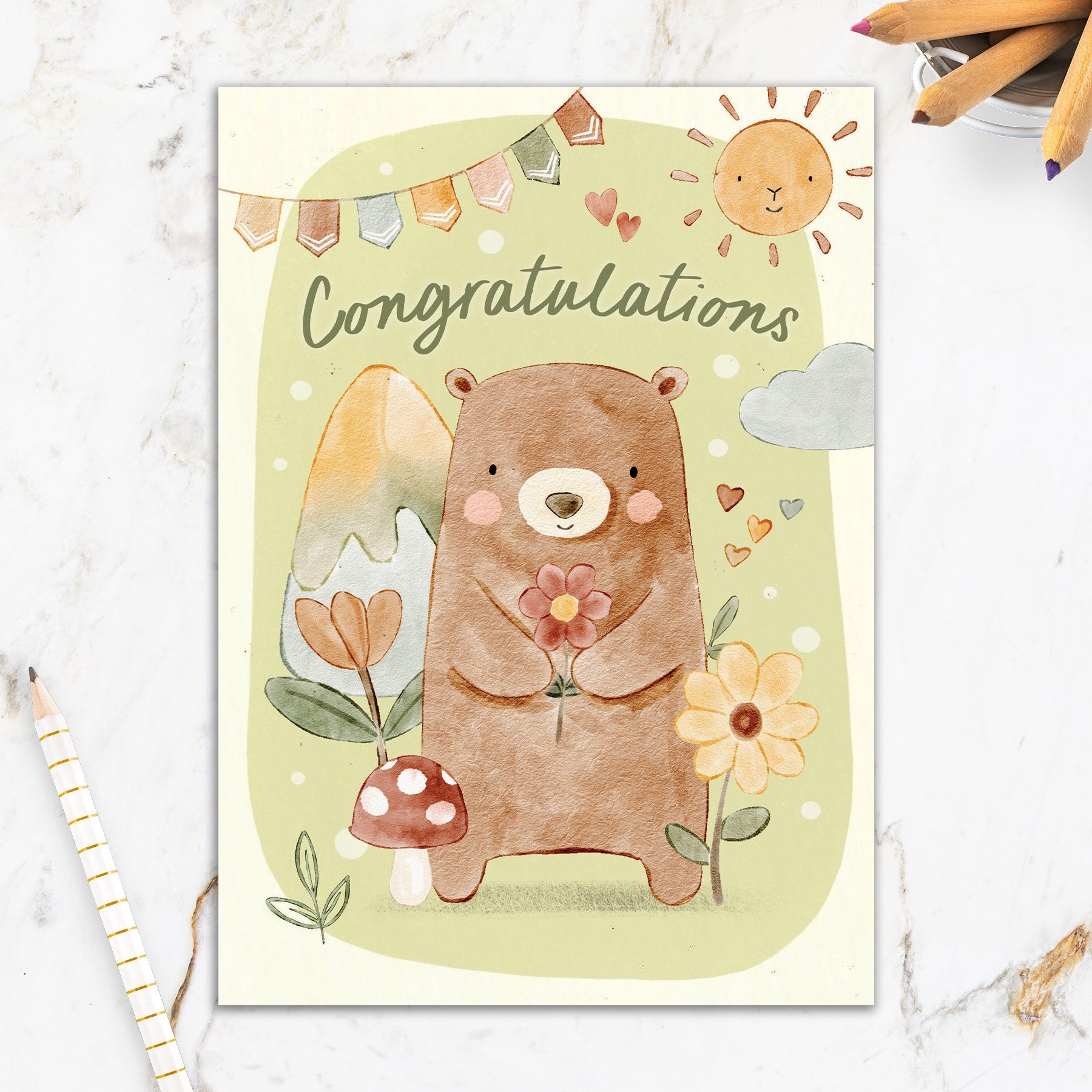 This greeting card measures 5" x 7" and comes with a coordinating colorful envelope.