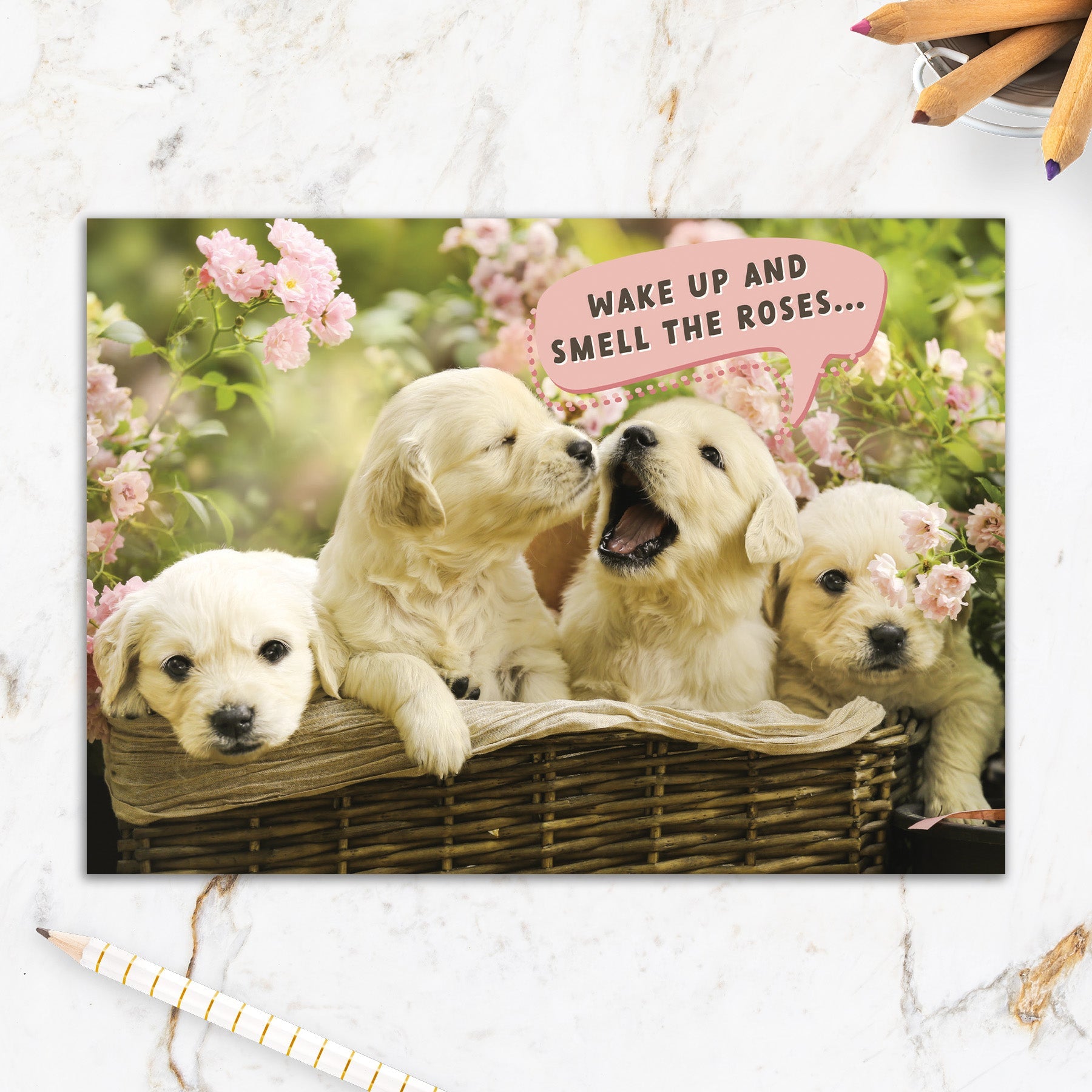 Inside Greeting: Sending you a bouquet of puppy kisses to brighten your day! Happy Birthday