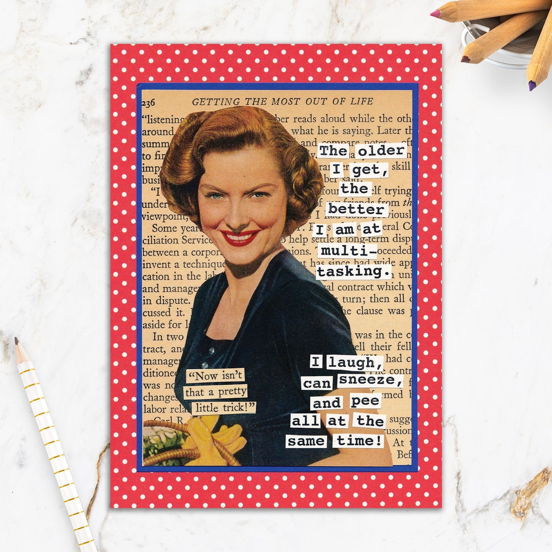 This greeting card measures 5" x 7" and comes with a coordinating colorful envelope.